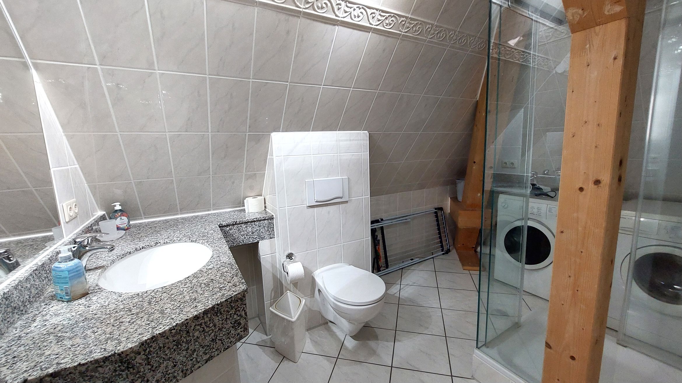 Ihre moderne Maisonette-Wohnung 26RB12 - Silbermöwe hat eine Größe von ca. 67 qm und ist für 5 Personen eingerichtet. Das 3-Raum-Appartement befindet sich im 2. und 3. Obergeschoss und verfügt über eine große Dachterrasse mit Blick über die Dächer von Binz sowie einen Balkon der zu einem sonnigen Frühstück einlädt. Im 2. Obergeschoss befindet sich der gemütliche Wohnraum mit angrenzender Wohnküche, das Bad sowie ein Schlafzimmer mit Doppelstockbett und Kleiderschrank. Der Wohnbereich verfügt über ein Sofa, einen Fernseher sowie Stereo-Anlage. Eine weitere vollwertige Schlafgelegenheit befindet sich in der Nische unter der Treppe. Die Küchenzeile ist komplett ausgestattet mit Geschirrspüler, Backofen, Ceranfeld, Kühlschrank, Kaffeemaschine, Wasserkocher und Toaster. Das schöne Duschbad verfügt über einen großen Waschtisch, WC sowie eigene Waschmaschine und Trockner. Über die Holztreppe gelangen Sie in das 3. Obergeschoss direkt in das geräumige Schlafzimmer. Hier finden Sie ein Doppelbett, Sitzmöglichkeiten, einen zusätzlichen Fernseher sowie den Zugang zur Dachterrasse. Für die bequeme Erreichbarkeit ist ein Aufzug im Haus vorhanden. Ein Stellplatz steht Ihnen im nahe gelegenen Parkhaus zur Verfügung. Unseren Gästen steht ein kostenfreier W-Lan Zugang zur Verfügung.