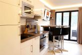 Ihre hochmoderne Wohnung 103RB8 im Haus Avida verfügt über 41qm2 Wohnfläche und befindet sich in der 1. Etage. Die 2-Raum-Wohnung ist mit bis zu 4 Personen belegbar und verfügt einen Balkon mit Meerblick, der zum Verweilen einlädt. Die hochwertige, attraktive Ausstattung trägt zur Entschleunigung für einen erholsamen Aufenthalt bei. Ihre Nichtraucherwohnung verfügt über einen vorgelagerten Flur mit Garderobe und großem Kleiderschrank. Angrenzend ist die schöne Wohnküche mit Essbereich (Tresen) sowie einem Wohnbereich mit gemütlicher Sitzgruppe inklusive Schlafcouch und direktem Zugang zum Balkon zu finden. Die technische Einrichtung umfasst einen großen Flachbildfernseher, einen Blue ray player und eine Musikanlage von Denver. Im Küchenbereich erwartet Sie ein Backofen, Cerankochfeld, Mikrowelle, Geschirrspüler, Kühlschrank mit separaten Tiefkühlfach, eine Kaffeemaschine, Wasserkocher, Toaster, eine Brotschneidemaschine sowie umfangreiches Kücheninventar.