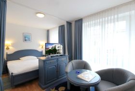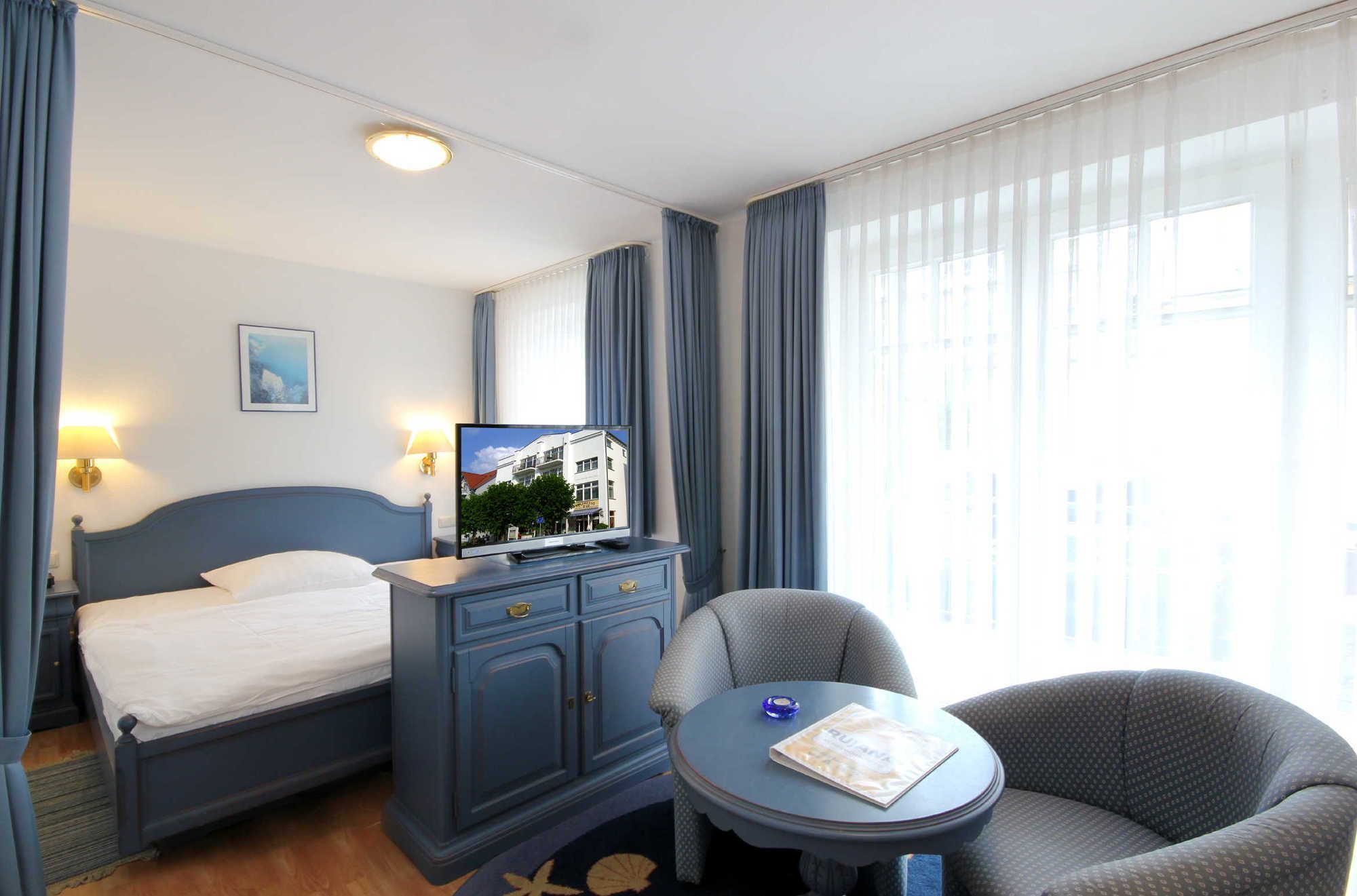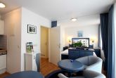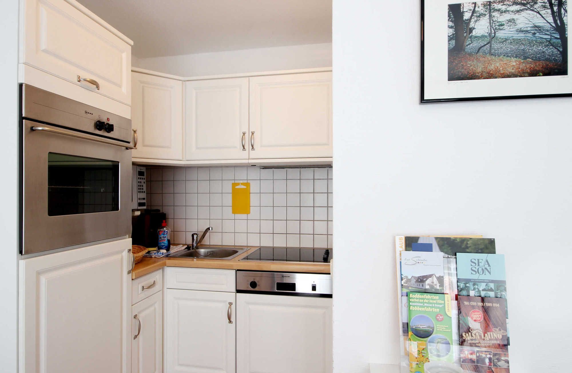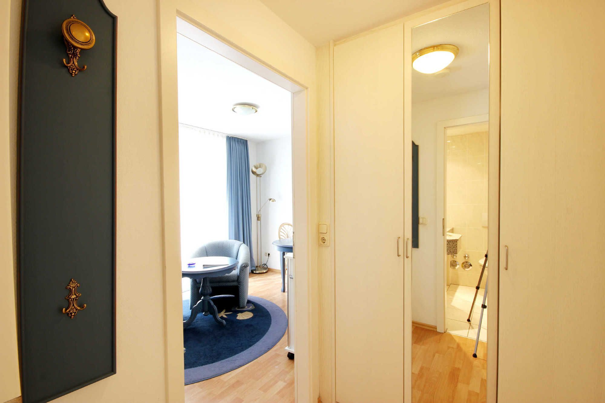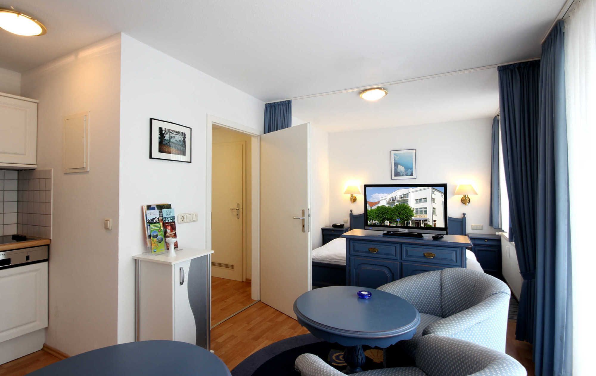 Ihre 1-Zimmerwohnung 23RB4 hat eine Größe von ca. 30 qm und ist für 2 Personen eingerichtet. Sie befindet sich im Hochparterre und verfügt über einen Südbalkon. Dem kombinierten Wohn- Schlafraum schließt sich eine halboffene Küche und der Balkon an. Vom vorgelagerten Flur aus erreichen Sie das geräumige Duschbad mit Waschtisch, Handtuchheiztrockner und WC. Im Wohn-Schlafraum finden Sie neben einer Sitz- und einer Essecke ein massives Doppelbett, ein Flachbild-TV, der kostenlose WLAN-Zugang und ein Radio. Die Küche verfügt u.a. über Backofen, Geschirrspülmaschine, Mikrowelle Kühlschrank, Kaffeemaschine, Toaster, Wasserkocher und diverse andere Küchenhelfer. Im Flur finden Sie einen geräumigen Kleiderschrank. Ihr Vierbeiner ist hier Herzlich Willkommen! Ein kostenloser PKW-Stellplatz steht Ihnen auf dem Parkplatz Zentrum (ca. 400 m vom Objekt entfernt) während Ihres Aufenthaltes zur Verfügung.
