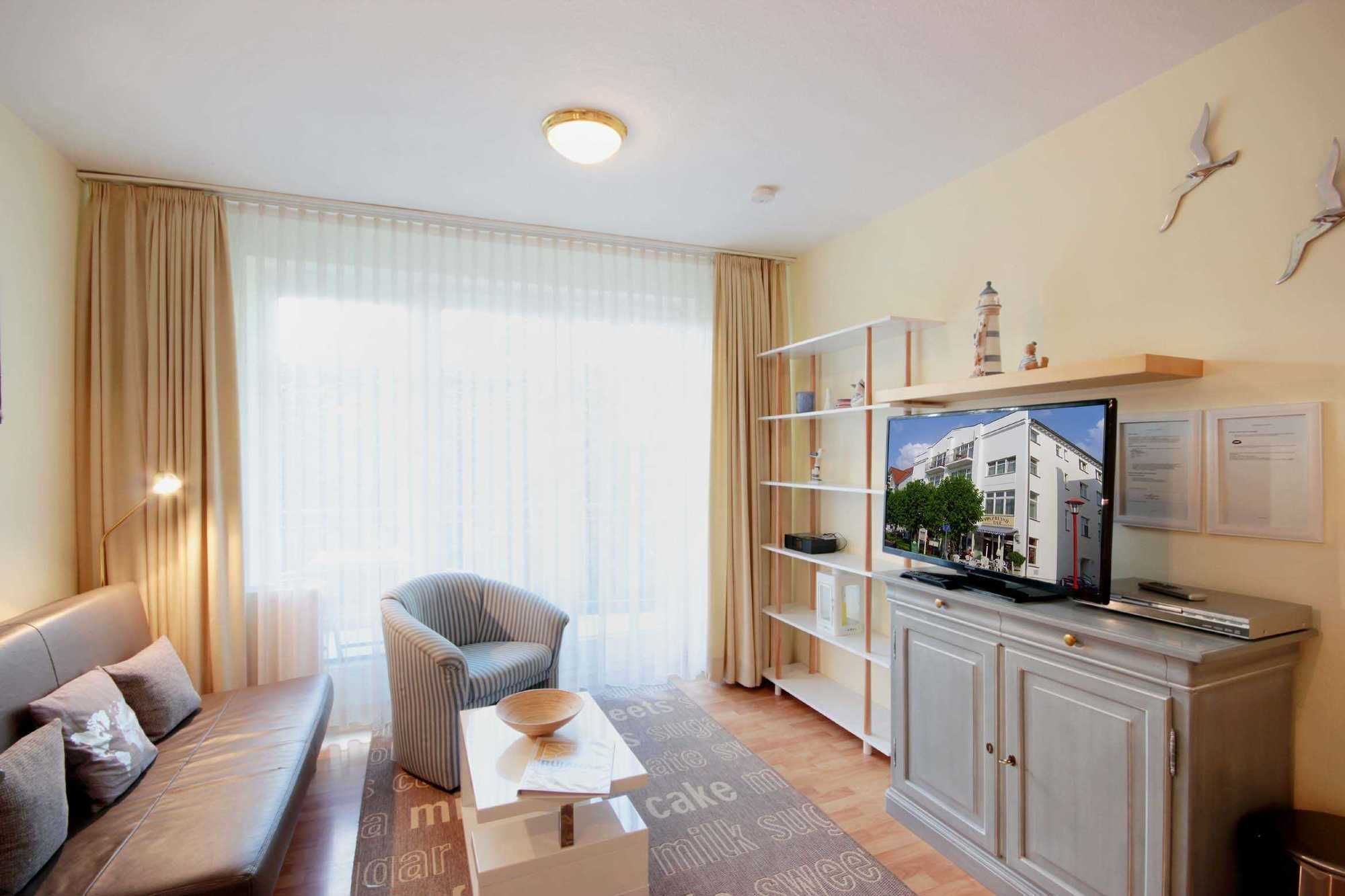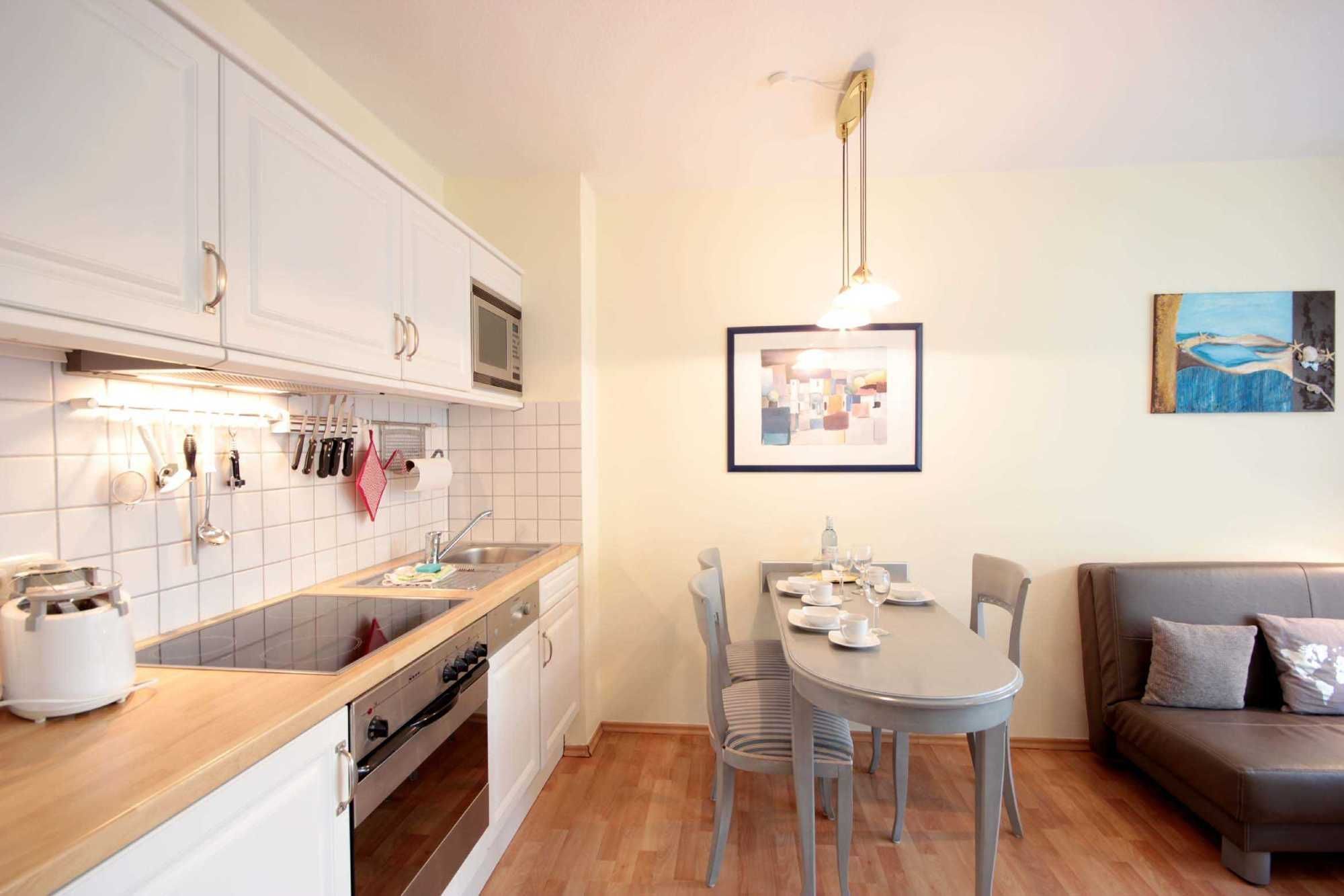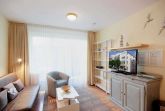 Ihre 2-Zimmer Ferienwohnung 23RB3 befindet sich im Hochparterre, ist ca. 37 qm groß und für 3 Personen gut geeignet. Neben dem Wohnraum mit Schlafsofa, Flachbild-TV, einem nach Norden ausgerichteten Balkon und einer integrierten komplett ausgestatteten Küche mit Geschirrspüler, Backofen, Mikrowelle, Wasserkocher, Toaster und Kaffeemaschine gehört auch ein Schlafzimmer mit Doppelbett und Kleiderschrank sowie ein Badezimmer mit Waschtisch, Dusche und WC zu Ihrer Ferienwohnung. Für die Kleinen steht ein Kinderbettchen und ein Kinderhochstuhl bereit. Ein kostenfreier WLan-Zugang steht Ihnen ebenfalls zur Verfügung. Ein PKW-Stellplatz steht Ihnen auf dem Parkplatz \Zentrum\ (ca. 400 m vom Objekt entfernt) zur Verfügung.
