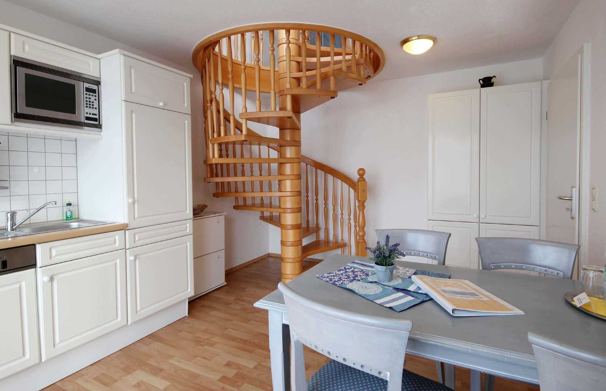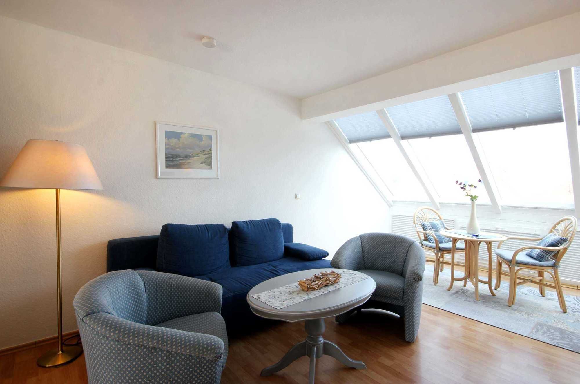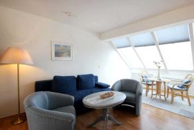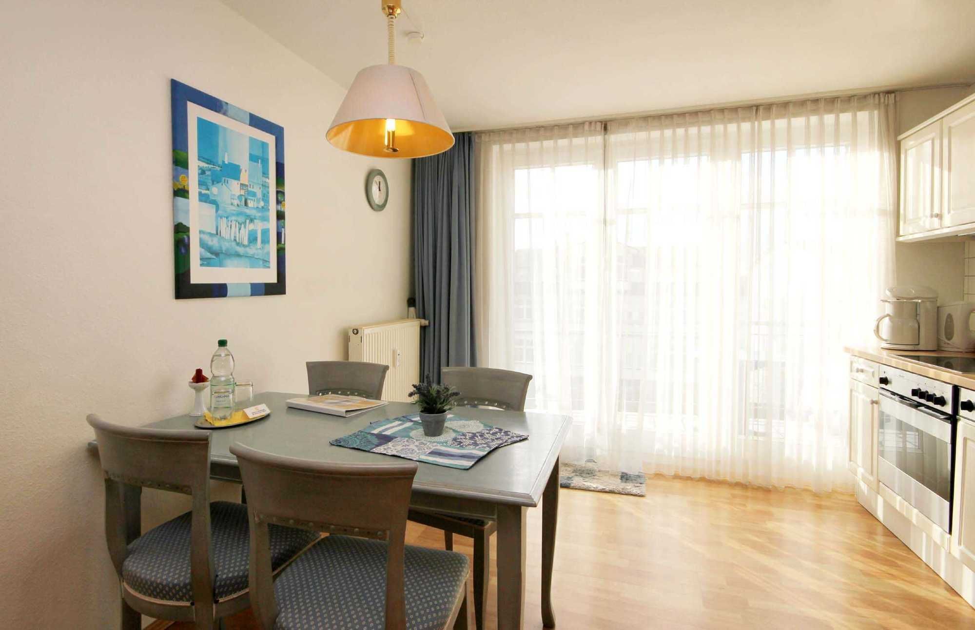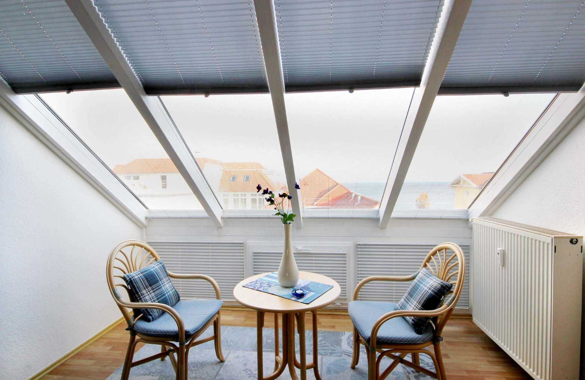 Ihre gemütliche Nichtraucher-Meerblick-Wohnung 23RB27 hat eine Größe von ca. 70 qm und ist für 4 Personen eingerichtet. Sie befindet sich im 3. und 4. Obergeschoss und verfügt über zwei Südbalkone. Im 3. Obergeschoß befindet sich das Schlafzimmer, die Küche mit Essplatz und das Badezimmer mit Waschtisch, Dusche und WC. Im separaten Schlafraum finden Sie ein Doppelbett und einen Kleiderschrank. Die Küche ist mit Cerankochfeld, Backofen, Geschirrspüler, Mikrowelle und diversen Kleingeräten komplett ausgestattet. Die Verbindung zwischen dem 3. und dem 4. Obergeschoß schafft eine geräumige Wendeltreppe. Das Wohnzimmer befindet sich im 4. Obergeschoß und erstreckt sich über die gesamte Breite des Hauses. Hier befindet sich eine gemütliche Sitzgruppe mit Schlafsofa und eine Schmökerecke. Von hier aus haben Sie einen schönen Blick auf die Promenade und die Ostsee. Zur technischen Ausstattung gehören ein TV-Gerät, kostenloses WLAN und eine Musikanlage. Ihren PKW können Sie kostenfrei auf dem wohnungseigenen Parkplatz im nahegelegenen Parkhaus einstellen. Haustiere sind in dieser Wohnung nicht erlaubt.