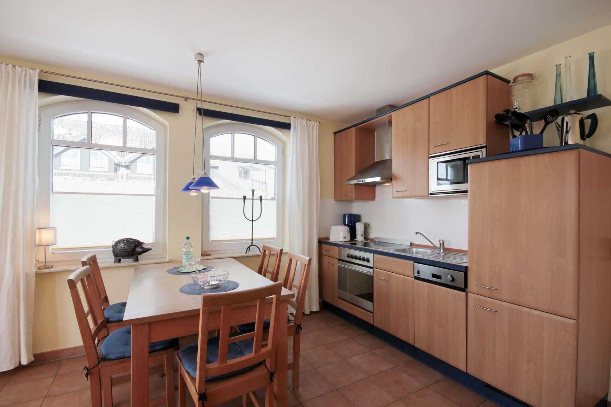 Ihre Ferienwohnung 90578 (Nichtraucher) hat eine Größe von ca. 58 qm und ist für 6 Personen eingerichtet. Sie befindet sich im 1. Obergeschoß, mit Wohnzimmer und sonnigem Balkon auf der Südseite. Der Wohnbereich teilt sich auf in Sitzgruppe mit TV-Gerät und Musikanlage, sowie Küchenzeile mit Geschirrspüler, Mikrowelle, Herd und diversen elektrischen Kleingeräten. Ein Essplatz trennt den Küchen- vom Wohnbereich. Die gemütliche Sitzgruppe kann zur Doppelbettcouch umgebaut werden und dient im Bedarfsfall für 2 Personen als Schlafgelegenheit. Weiterhin verfügt das Appartement über ein großes Schlafzimmer mit Doppelbett und ein 2. Schlafzimmer mit 2 Einzelbetten. Ein Badezimmer mit Waschtisch, Dusche und WC ist ebenfalls vorhanden. Im Keller des Hauses befindet sich eine Sauna sowie ein Abstellraum für Fahrräder oder Kinderwagen. Ab sofort können unsere Gäste einen kostenfreien Internetzugang nutzen. Ihren PKW können Sie im nur 100 m entfernten Parkhaus abstellen. Auf Grund der zentralen innerörtlichen Lage können Sie teilweise den Verkehr hören.