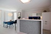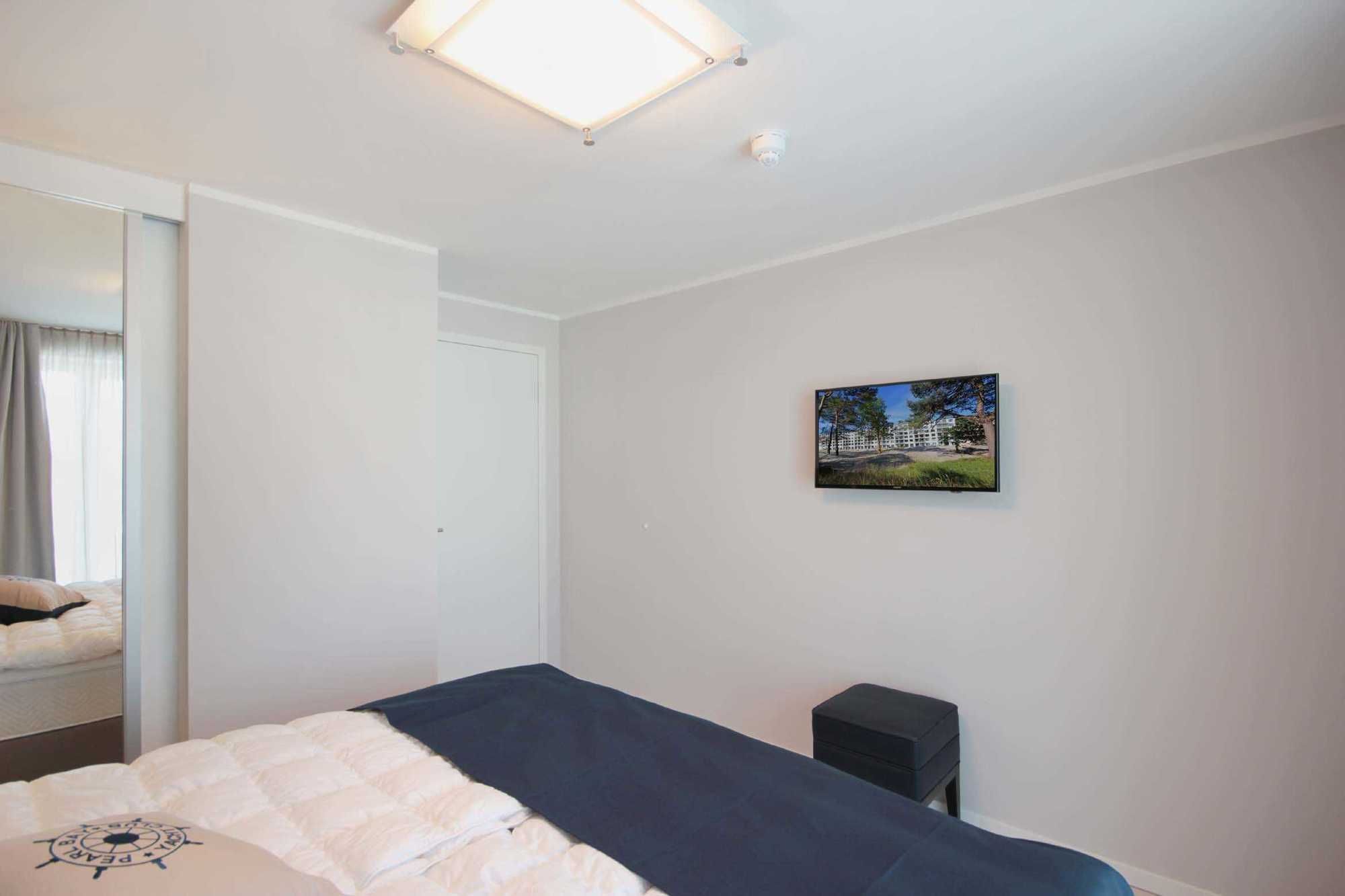 Ihre sonnige 3-Raum-Wohnung 104RB505 verfügt über 64qm2 Wohnfläche und befindet sich in der 5. Etage zur Landseite. Die hochmodern eingerichtete Wohnung ist mit bis zu 5 Personen belegbar. Ihre Nichtraucherwohnung verfügt über einen vorgelagerten Flur mit Garderobe und großem Kleiderschrank. Angrenzend ist die schöne Wohnküche (Theke) mit Essbereich zu finden. Der stilvoll eingerichtete Wohnbereich ist mit gemütlicher Sitzgruppe inkl. Schlafcouch für 2 Personen, Flachbild-TV und WLAN ausgestattet. Im Küchenbereich erwartet Sie ein Backofen, Cerankochfeld, Geschirrspüler, Kühlschrank mit Tiefkühlfach, eine Kaffeemaschine, Wasserkocher, Toaster sowie umfangreiches Kücheninventar. Das Tageslichtbad mit ebenerdiger Dusche bietet genügend Abstellflächen für Kosmetika und einen Handtuchheiztrockner. Das größere Schlafzimmer verfügt über einen weiteren Flachbild-TV, Kleiderschrank und ein Doppelbett. Im kleineren Schlafzimmer befindet sich ein Einzelbett, Kleiderschrank sowie ein Schreibtisch. In beiden Schlafzimmern bescheren Ihnen neue Boxspringbetten himmlische Träume nach ereignisreichen Tag-Erlebnissen.