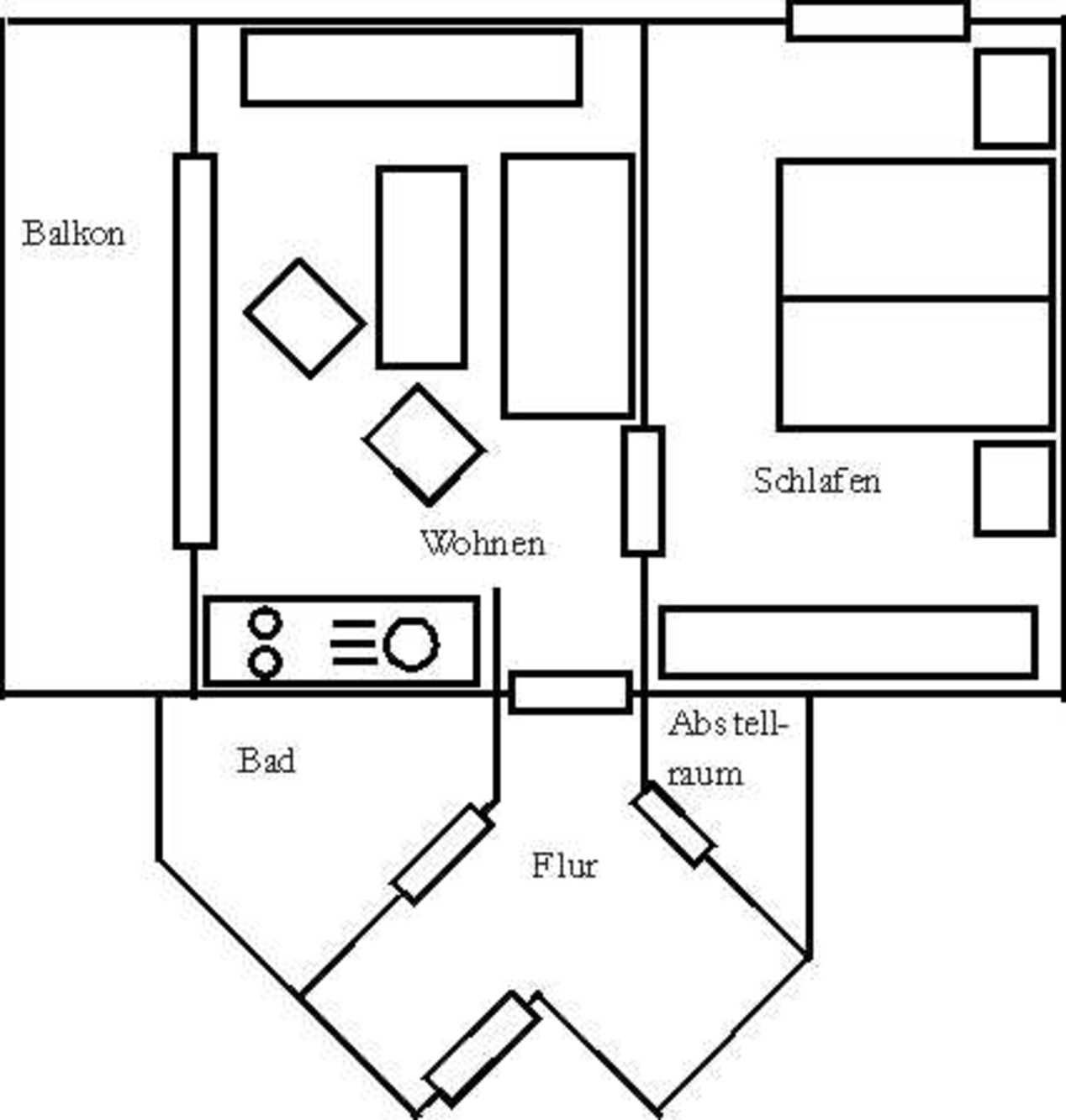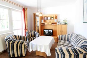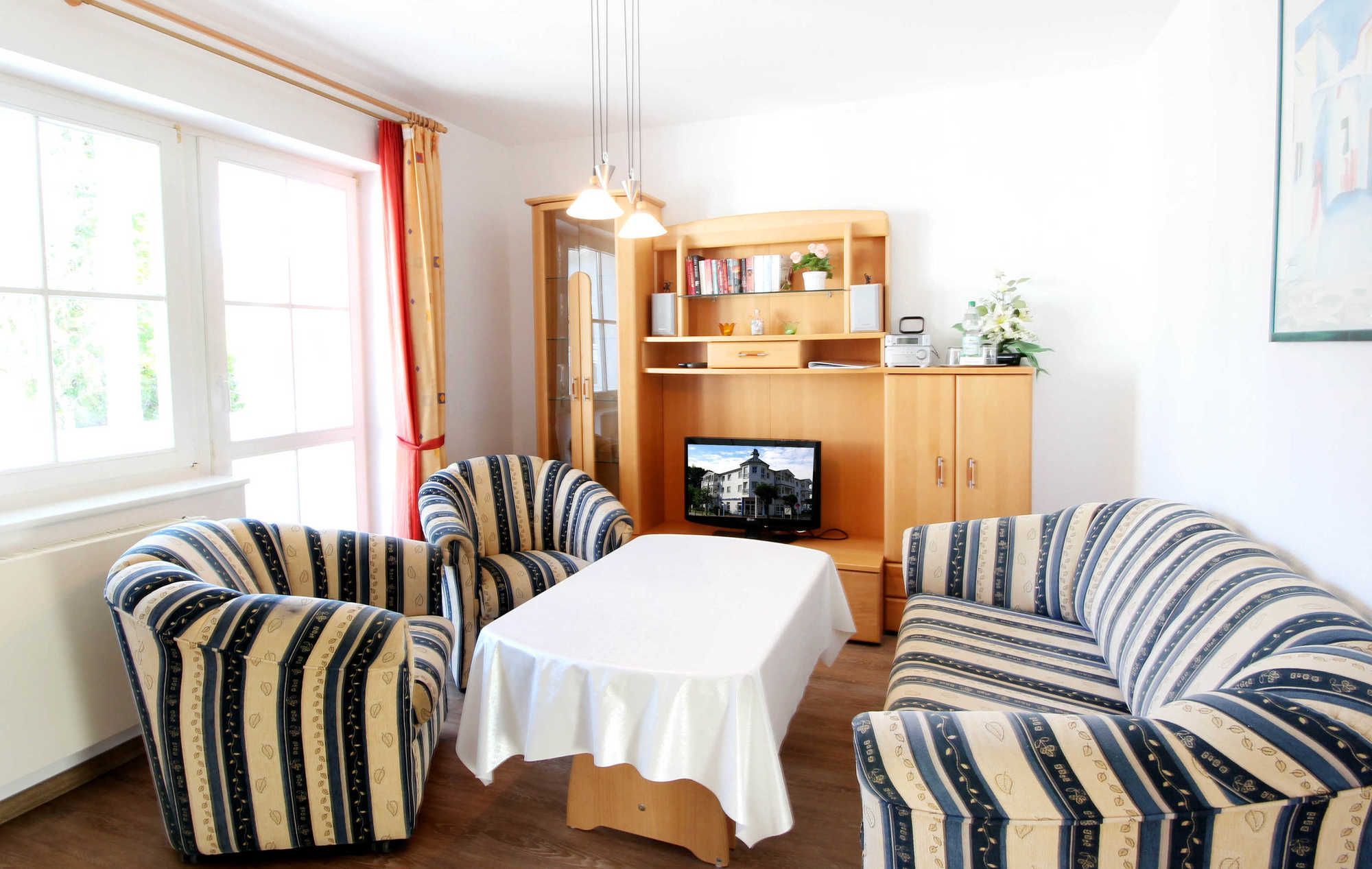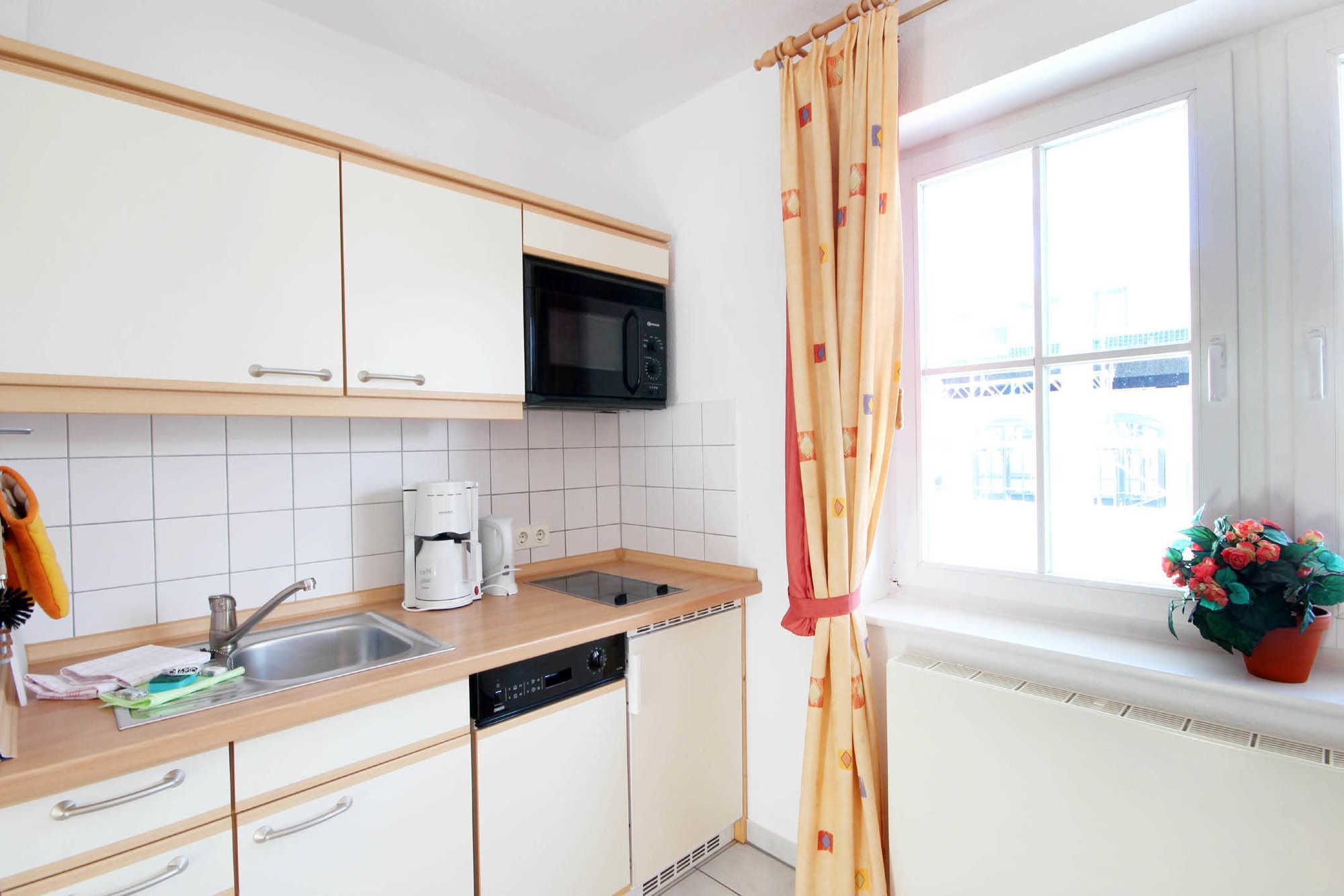 Ihre Ferienwohnung 90027 befindet sich im 2. Obergeschoß des Hauses. Vom Südost-Balkon der Wohnung haben Sie einen schönen Blick über die Dächer von Alt-Binz. Die 2 Zimmer - Wohnung hat eine Größe von ca. 45 qm. Neben dem Wohnraum mit integrierter Kochzeile gibt es einen separaten Schlafraum, Flur, ein Badezimmer mit Waschtisch, Dusche, WC und einen Abstellraum. Im Schlafraum befindet sich ein Doppelbett und ein großer Kleiderschrank. Im Wohnraum können auf dem Schlafsofa weitere zwei Personen schlafen. Außerdem finden Sie im Wohnraum TV und Radio/CD-Spieler sowie einen kostenfreien Internetzugang. Die Kochzeile ist mit Geschirrspülmaschine, Mikrowelle, Kühlschrank, 2-Plattenceranfeld und diversen Kleingeräten komplett ausgestattet. Ein PKW-Stellplatz ist im nahe liegenden Parkhaus vorhanden.