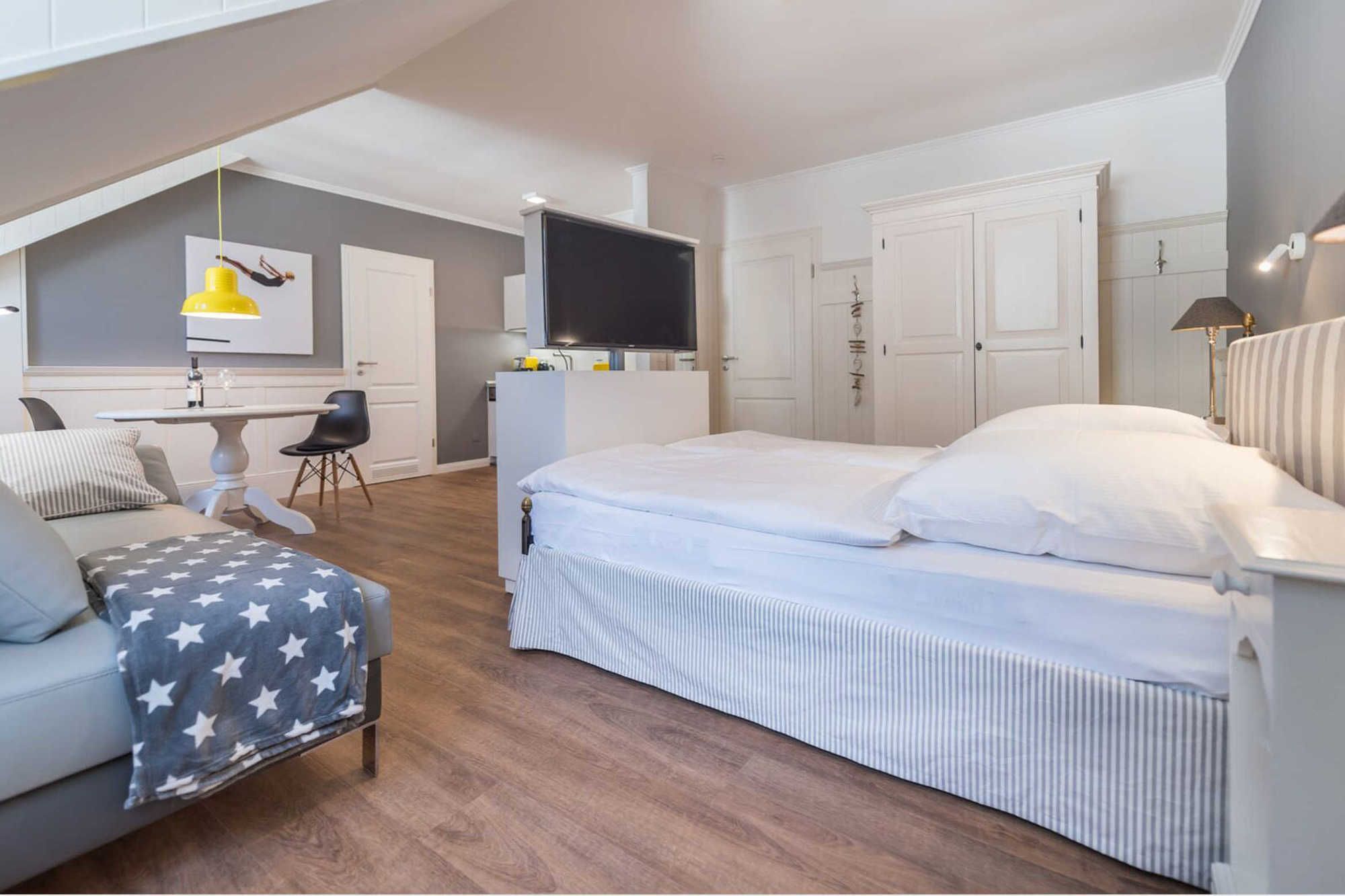 Ihre moderne Ferienwohnung 90624 befindet sich im 2. Obergeschoss im Haus Min Hüsung. Die 1 Zimmer - Wohnung im maritimen Design hat eine Größe von ca. 36 qm und ist mit bis zu 2 Personen belegbar.