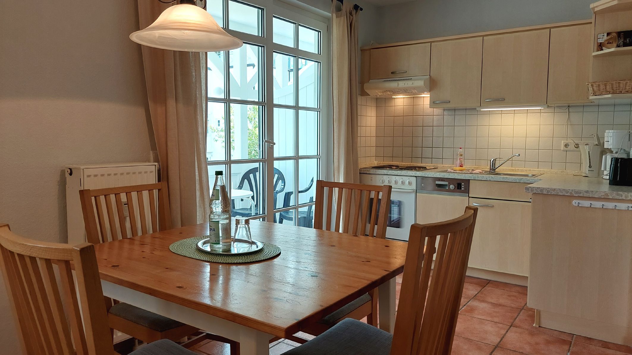 Die Küchenzeile ist mit Geschirrspülmaschine, Backofen, 4-Plattenherd, Kühlschrank und diversen Kleingeräten ausgestattet.