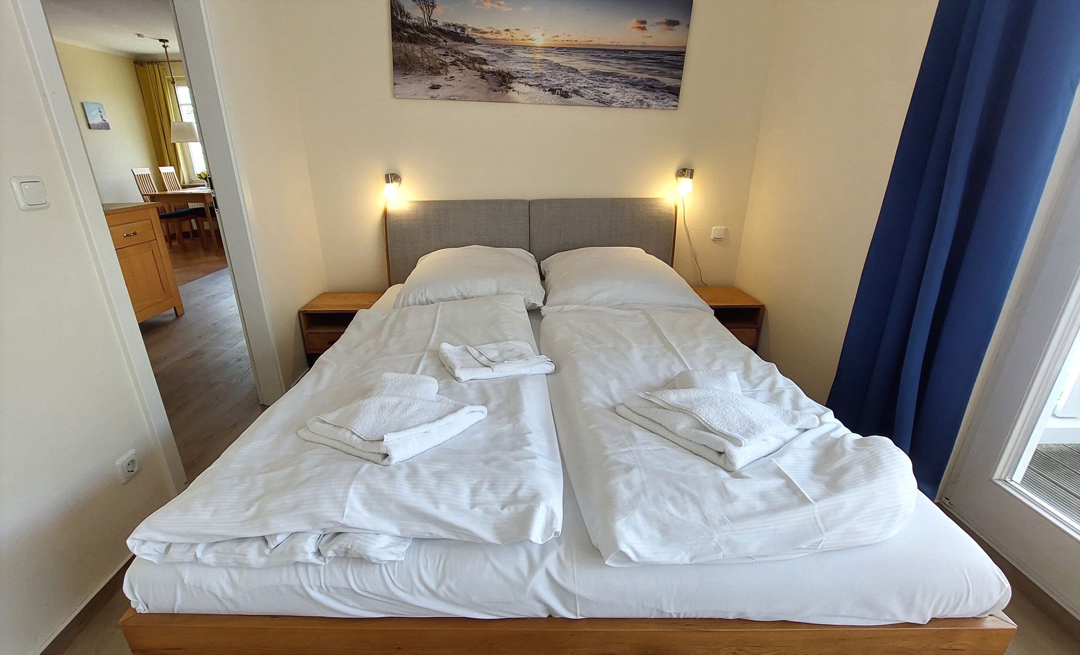 Ihre Ferienwohnung 9RB5 (Nichtraucher) befindet sich im 1. Obergeschoss der Villa Grieben in der Residenz am Klünderberg. Die 2 - Zimmer - Wohnung hat eine Größe von ca. 45 qm und ist mit bis zu 4 Personen belegbar. Ein schöner Nord-Ostbalkon befindet sich vor dem Schlafzimmer.