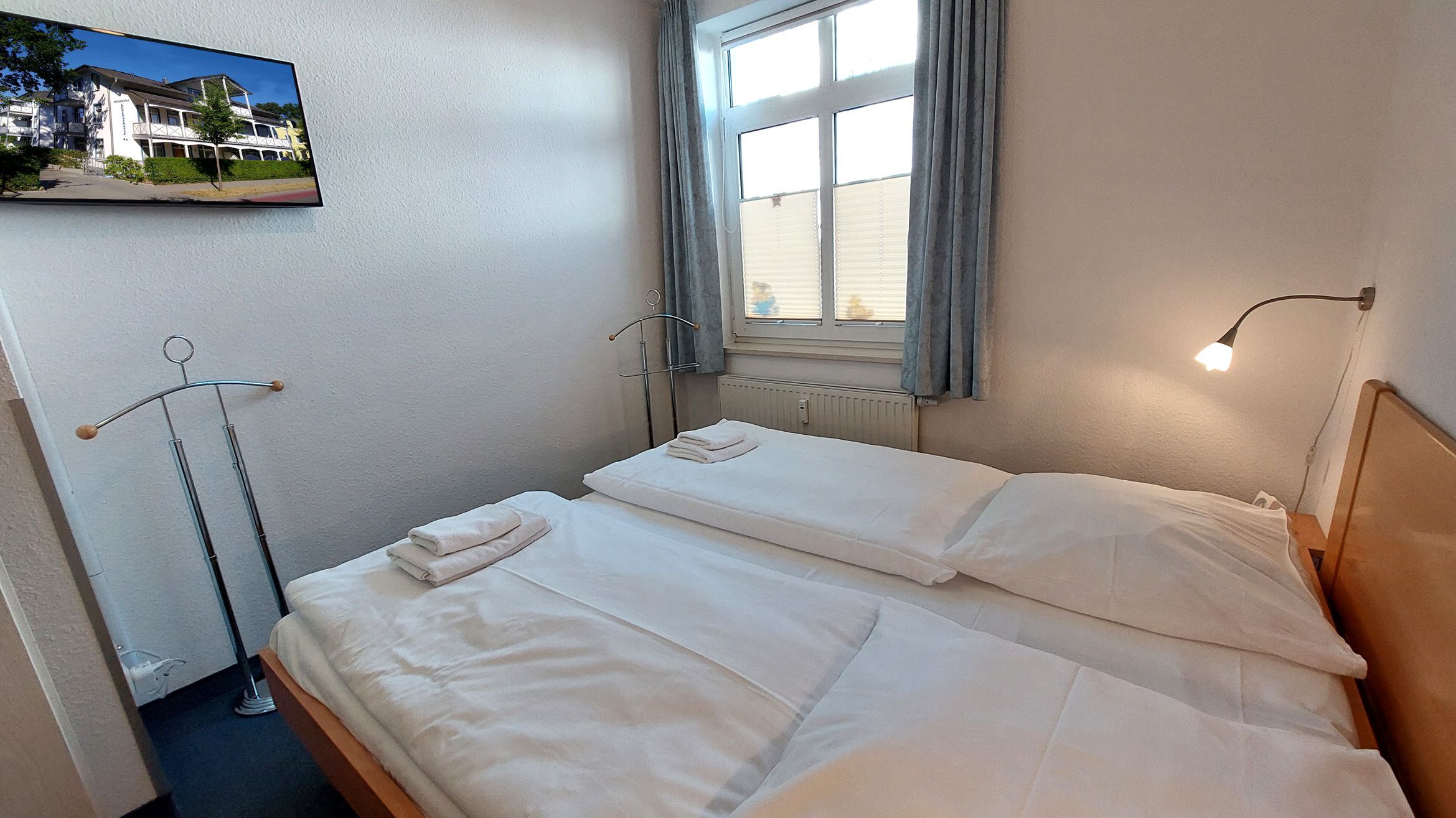 Ihre Nichtraucher-Ferienwohnung 90346 befindet sich im Erdgeschoss des Hauses Residenz Dünenstraße. Die 2 Zimmer - Wohnung hat eine Größe von ca. 38 qm und ist mit bis zu 2 Personen belegbar. Neben dem Wohn- und Essbereich mit Sitzecke gibt es ein separates Schlafzimmer, eine Küchenzeile sowie ein Badezimmer mit Waschtisch, Dusche/WC, Kosmetikspiegel und Fön. Das Schlafzimmer verfügt über ein Doppelbett, einen Kleiderschrank, ein Flachbildfernseher sowie Radiowecker. Im Wohnraum gibt es eine gemütliche Sitzecke mit Kabel-TV, WLAN und Musik-Anlage sowie einen gesonderten Essplatz Die Küchenzeile ist mit einem Backofen, Kühlschrank, Kochfeld, Mikrowelle, Kaffeemaschine, Wasserkocher, Toaster und diversen Kleingeräten ausgestattet. Ein geschützter in Richtung Nordwest ebenerdiger Balkon schließt sich dem Wohnbereich an. Ein wohnungseigener Außenstellplatz (Nr. 6) steht Ihnen an der Residenz zur Verfügung. Ihr Haustier ist in dieser Wohnung herzlich willkommen.