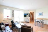Ihre gemütliche Maisonette-Wohnung 90191 hat eine Größe von ca. 61 qm und ist für maximal 5 Personen eingerichtet. Sie befindet sich im 2. Obergeschoss und verfügt über eine große Dachterrasse Richtung Südwesten mit eigenem Strandkorb und wunderschönem Blick auf den Schmachter See. In der unteren Wohnebene finden Sie den Wohnraum mit komplett ausgestatteter Kochzeile, ein Duschbad und einen der beiden Schlafräume. Eine Wendeltreppe führt Sie in das „Turmzimmer“, in welches sich der 2. Schlafraum befindet. Der komfortable Wohnbereich verfügt über eine Sitzgruppe mit Schlafsofa für die 5. Person, Sitz- und Essplatz, Flachbild-TV und Musikanlage. Die Küchenzeile ist mit Geschirrspüler, Mikrowelle, Espressomaschine, Backofen, Ceranfeld und diversen Elektrogeräten (Kaffeemaschine, Toaster, Wasserkocher, Eierkocher, Allesschneider ) komplett ausgestattet. Das Bad verfügt über Dusche, Waschtisch und WC. In beiden Schlafräumen finden Sie jeweils ein Doppelbett und Flachbild-TV, im Turmzimmer zusätzlich mit DVD-Player. Ein Kleiderschrank befindet sich im Vorraum der beiden Schlafzimmer. Ein kostenfreier Internetzugang sowie eine separate Garage steht Ihnen zur freien Verfügung. Haustiere sind in dieser Wohnungen nicht erlaubt.