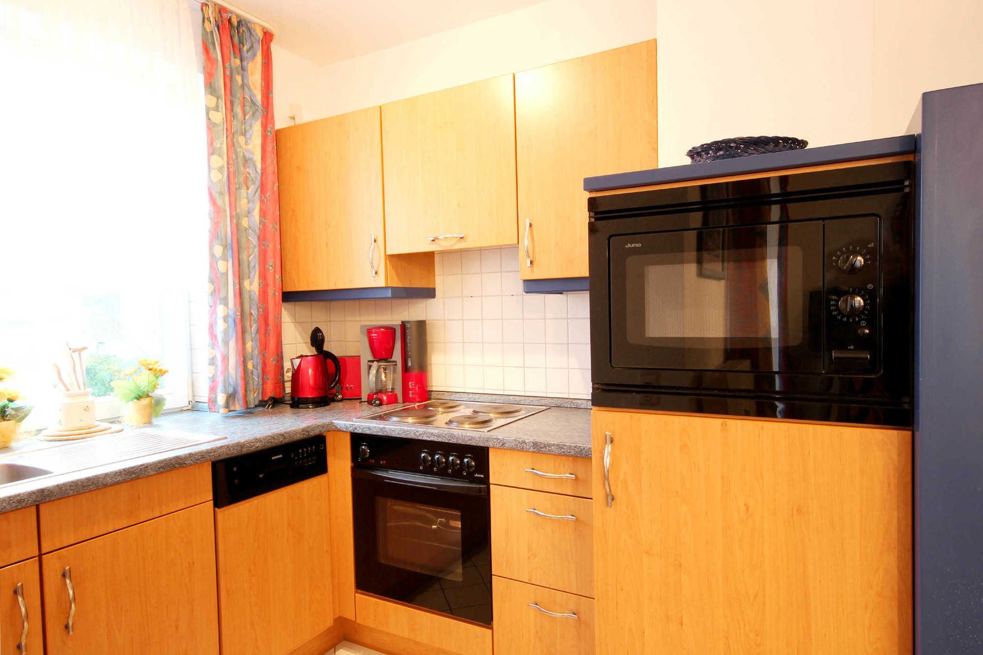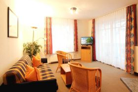 Die Wohnung ist mit einem Safe ausgestattet. Neben dem Wohnraum mit integrierter Kochzeile gibt es einen separaten Schlafraum, Flur und ein Badezimmer mit Waschtisch, Dusche, Fön, WC und Handtuchheiztrockner. Im Schlafraum befindet sich ein Doppelbett und ein großer Kleiderschrank. Im Wohnraum finden Sie neben der Sitzecke mit Schlafsofa für 2 weitere Personen auch einen separaten Essplatz, Flachbild-TV und Radio. Die Kochzeile ist mit Geschirrspülmaschine, Backofen, 4-Platten-Kochfeld, Mikrowelle, Kühlschrank und diversen Kleingeräten komplett ausgestattet. Ab sofort: kostenloser WLAN-Zugang.