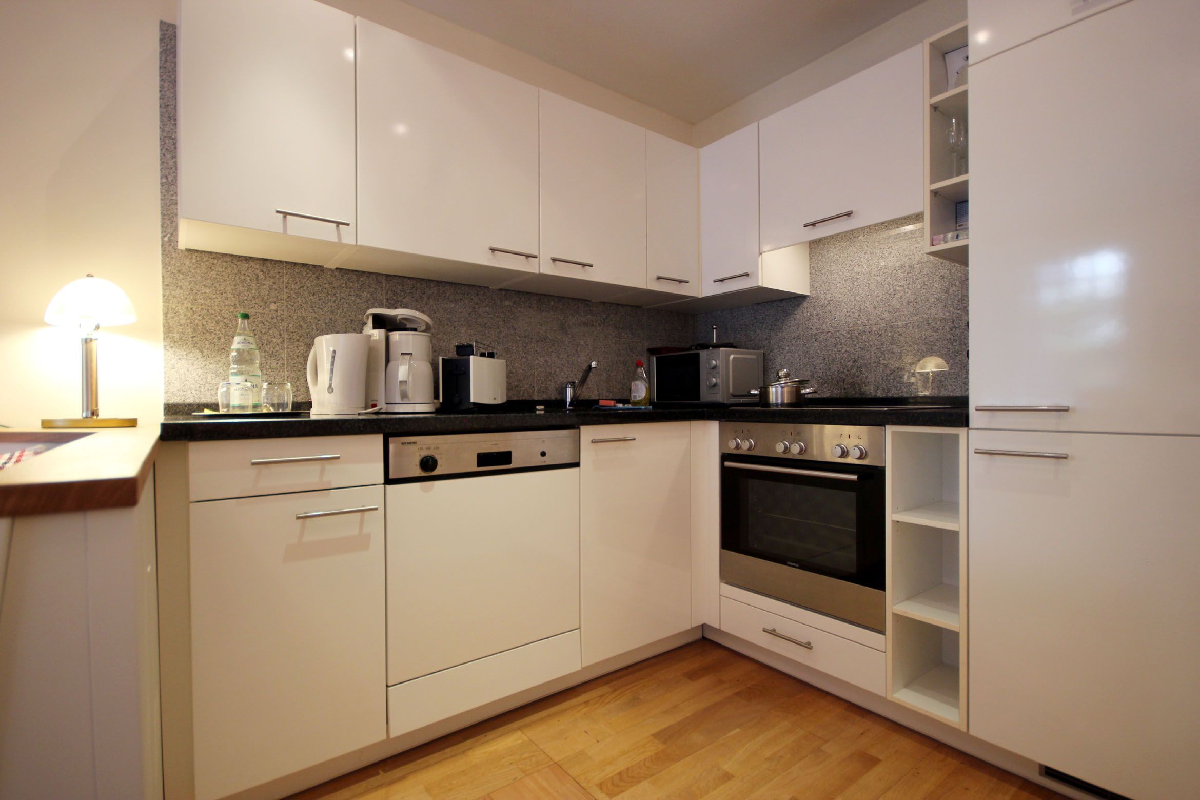 Die Küche ist mit Kühlschrank, Backofen, Ceranfeld, Geschirrspüler, Mikrowelle und Küchenhelfern komplett ausgestattet.