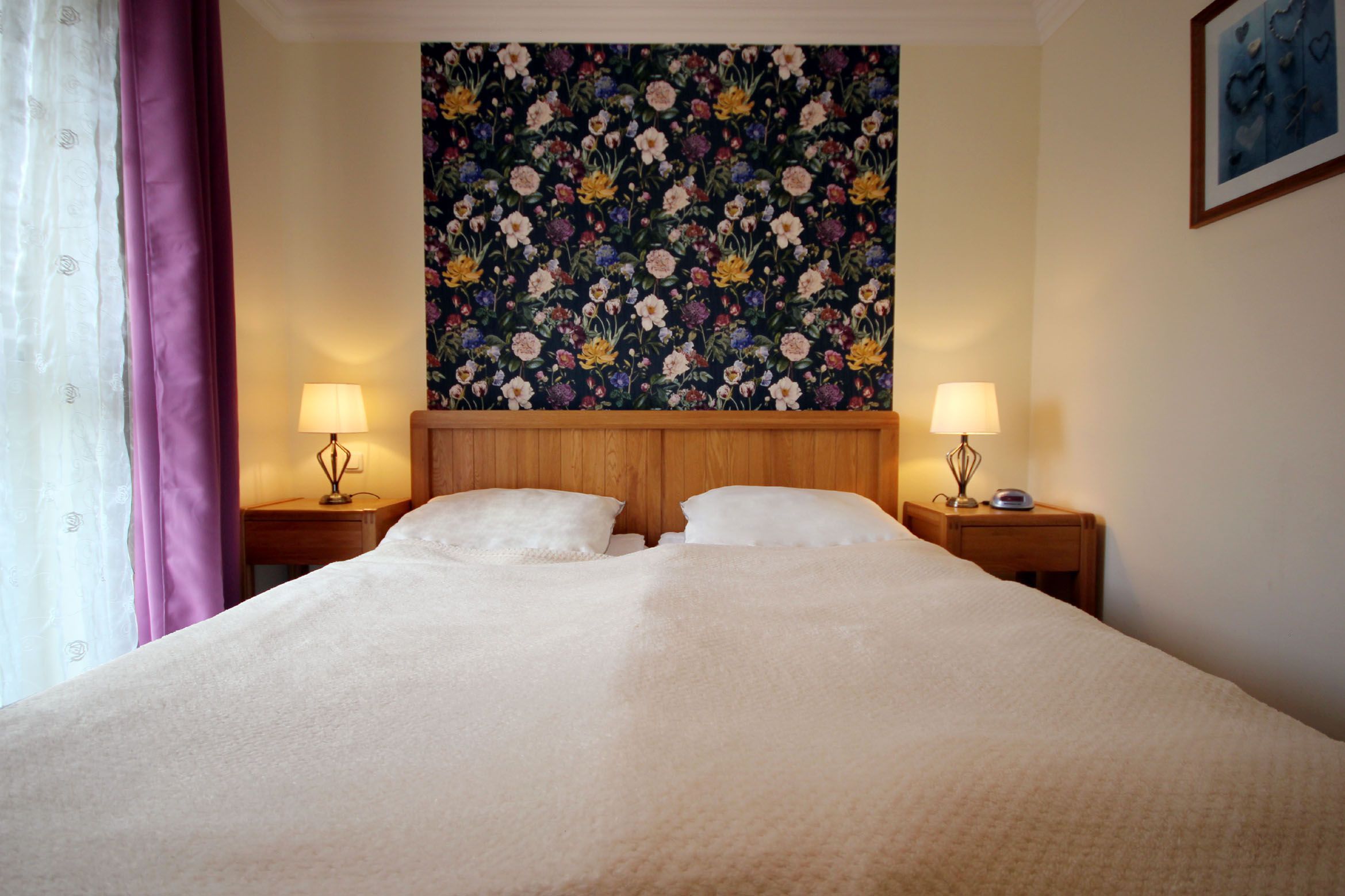 Das Schlafzimmer verfügt über ein Doppelbett mit Nachttischen sowie Verdunklungsstoffen.