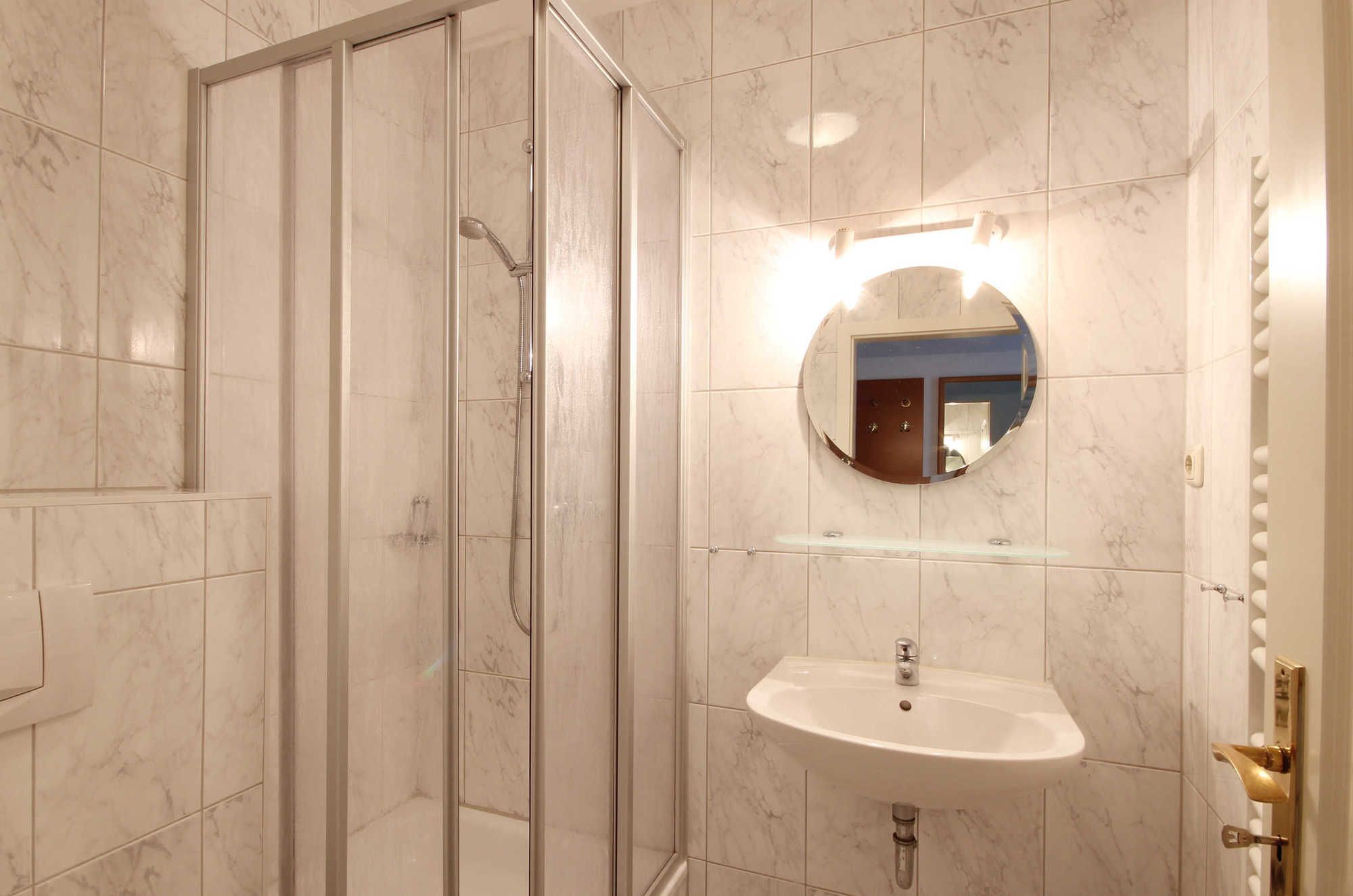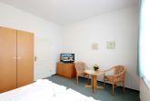 Ihre Ferienwohnung 90450 befindet sich im Erdgeschoss des Hauses Villa Hans. Die 1 Zimmer - Wohnung hat eine Größe von ca. 25 qm und ist mit bis zu 2 Personen belegbar. Neben dem kombinierten Wohn- und Schlafzimmer mit Sitzecke gibt es eine Küchenzeile sowie ein separates Badezimmer mit Waschtisch, Dusche, Handtuchheiztrockner und WC. Der Wohn- / Schlafbereich verfügt über ein Doppelbett, Radiowecker; einen Kleiderschrank sowie eine Sitzecke und der Flachbild-TV.Die kleine Wohnküche ist mit einem Kühlschrank, Kochfeld, Kaffeemaschine, Wasserkocher, Toaster und diversen Kleingeräten ausgestattet. In der Wohnung steht Ihnen ein kostenloser WLAN-Zugang zur Verfügung. Ihr Vierbeiner ist hier Herzlich Willkommen! Ein wohnungseigener Außenstellplatz sowie eine Unterstellmöglichkeit für Ihre Fahrräder steht Ihnen am Haus zur Verfügung.