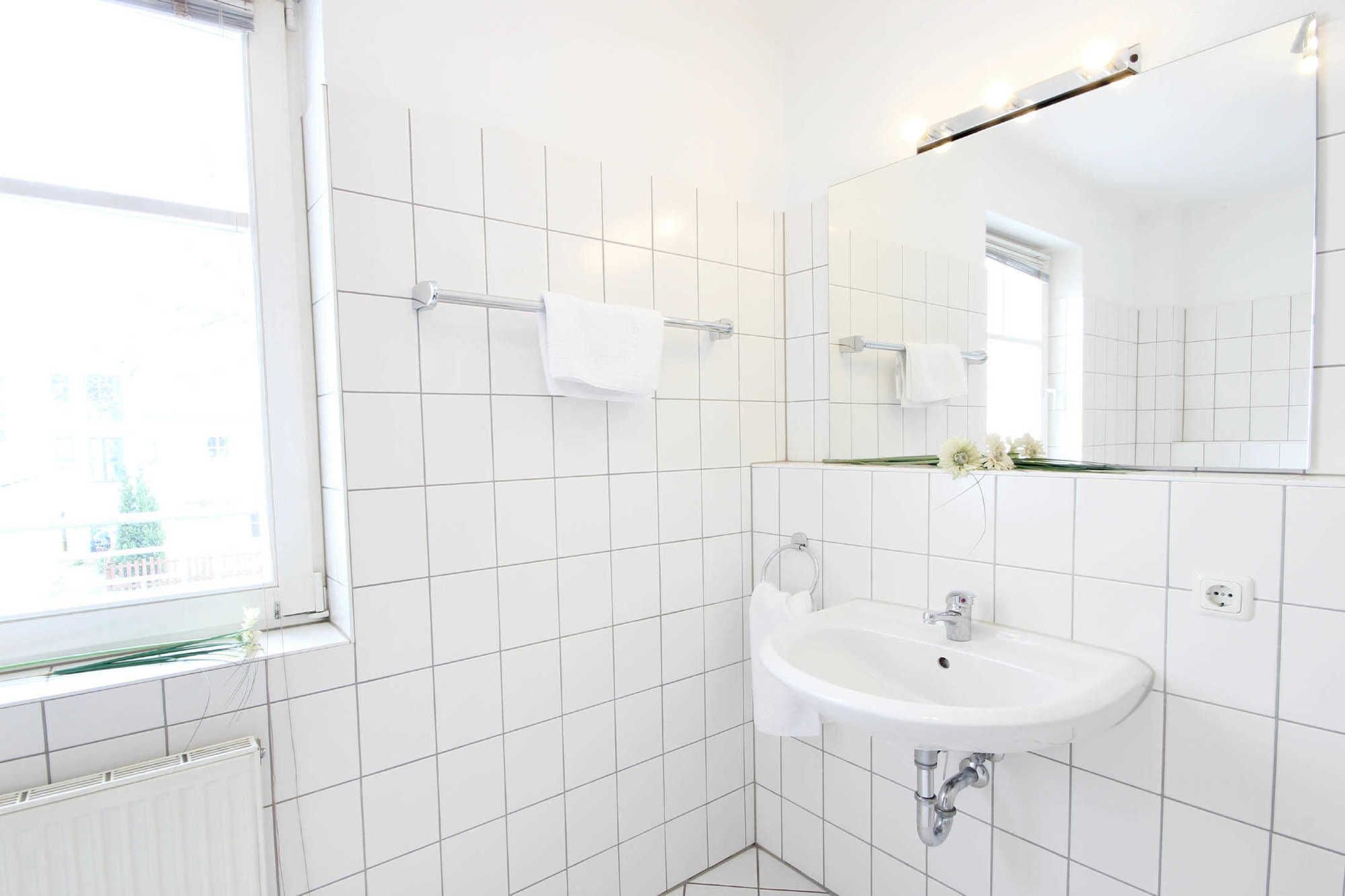 Diese 2-Raum-Nichtraucher-Wohnung hat ein Schlafzimmer mit einem Doppelbett, ein Einzelbett, geräumigen Kleiderschrank sowie einen TV. Der Wohnraum verfügt über eine gemütliche Schlafcouch, Flachbildfernseher, DVD-Player und eine voll ausgestattete integrierte Küche in der ein Geschirrspüler, Backofen, Kaffeemaschine, Wasserkocher, Toaster, Mikrowelle sowie ein separater Essplatz vorhanden ist. Im Badezimmer finden Sie einen Waschtisch, WC und Dusche vor. Diese Wohnung präsentiert sich seinen Gästen mit großen Fenstern, einem Südbalkon auf dem Sie am Nachmittag die Sonne genießen können und einem Westbalkon. Alle unsere Gäste haben einen gebührenfreien W-Lan Zugang in dieser Wohnung.