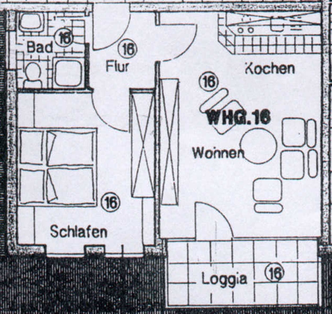 Ihre Ferienwohnung 24RB16 liegt im 2. Obergeschoss des Hauses. Sie hat einen schönen Südostbalkon auf dem Sie vom Morgen bis zum Nachmittag die Sonne genießen können und von dem Sie einen kleinen Meerblick haben. Die schöne 2 Raum Wohnung ist ca. 55 qm groß und für maximal 4 Personen eingerichtet. Das Wohnzimmer mit Sitzgruppe und TV ist gemütlich eingerichtet. Die Küchenzeile ist im Wohnbereich integriert und u.a. mit Ceranfeld, Geschirrspüler, Kühlschrank und Backofen ausgestattet. Im Schlafraum befindet sich ein Doppelbett und ein großer Kleiderschrank. Im Wohnraum können auf dem Schlafsofa die 3. und 4. Person schlafen. Das Bad ist vom Flur aus erreichbar und mit Dusche, WC und Waschtisch ausgestattet. Haustiere sind in dieser Wohnung nicht erlaubt. Ein kostenfreier Internetzugang und ein wohnungseigener Parkplatz steht für Sie in der Garage unter dem Haus zur Verfügung.