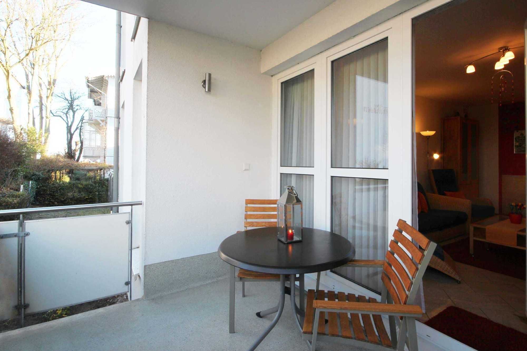 Ihre Ferienwohnung 24RB2 befindet sich im Hochparterre des Hauses. Sie ist ca. 52 qm groß und ideal für 2 Erwachsene und 1 Kind geeignet. Auch kleinere Haustiere bis ca. 12kg sind herzlich willkommen. Der geräumige Balkon lädt Sie zum Verweilen ein. Die liebevoll eingerichtete 2 Raum Wohnung wird auch gern „Muschelwohnung“ genannt, welches sich in maritimen Details widerspiegelt. Im Wohnzimmer befindet sich ein Schlafsofa und ein Essplatz. Zur technischen Ausstattung gehört die kostenfreie W-LAN Nutzung, ein Flachbildfernseher, eine Musikanlage und DVD-Player. Die Küchenzeile befindet sich im Flur der Wohnung bietet Geschirrspüler, Mikrowelle, 4-Plattenherd mit Backofen, Eier- und Wasserkocher sowie einer Kaffeemaschine komfortable ausgestattet. Das Duschbad bietet neben WC, Waschtisch und Handtuchheiztrockner zusätzlich einen fest integrierten Kosmetikspiegel. Im Schlafzimmer befindet neben dem Doppelbett, Nachttischschränkchen auch ein großer Spiegelkleiderschrank. Weiter Highlights sind: der hauseigene Sonnenschirm und Kinderhochstuhl, Wäschetrockner und Bügelbrett. Obendrein steht ein wohnungseigener Parkplatz in der Garage unter dem Haus zur Verfügung.