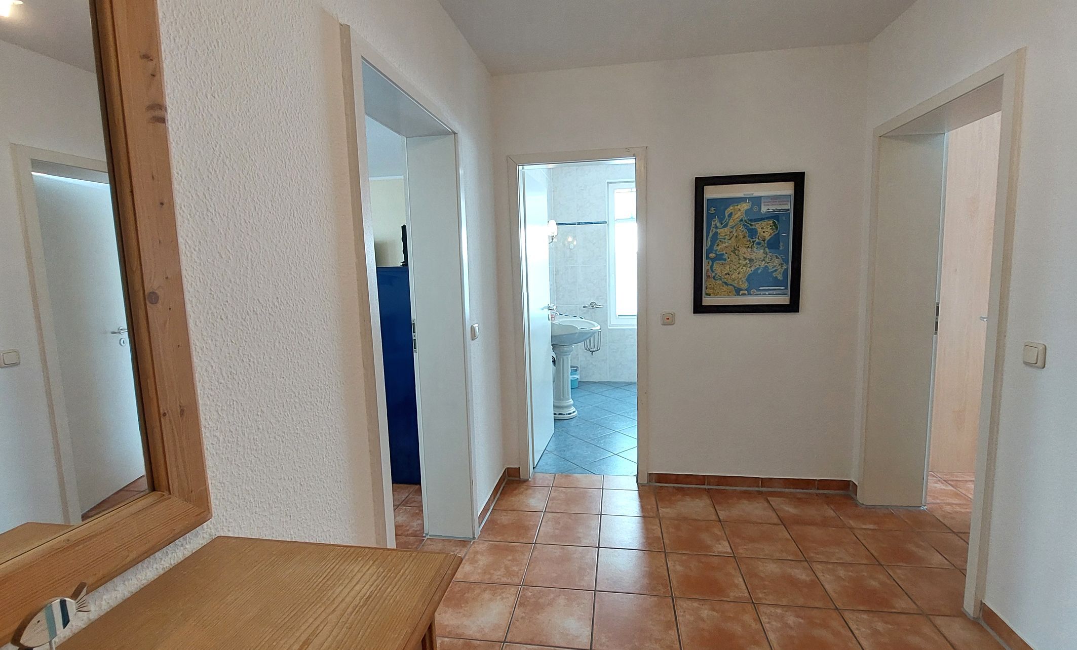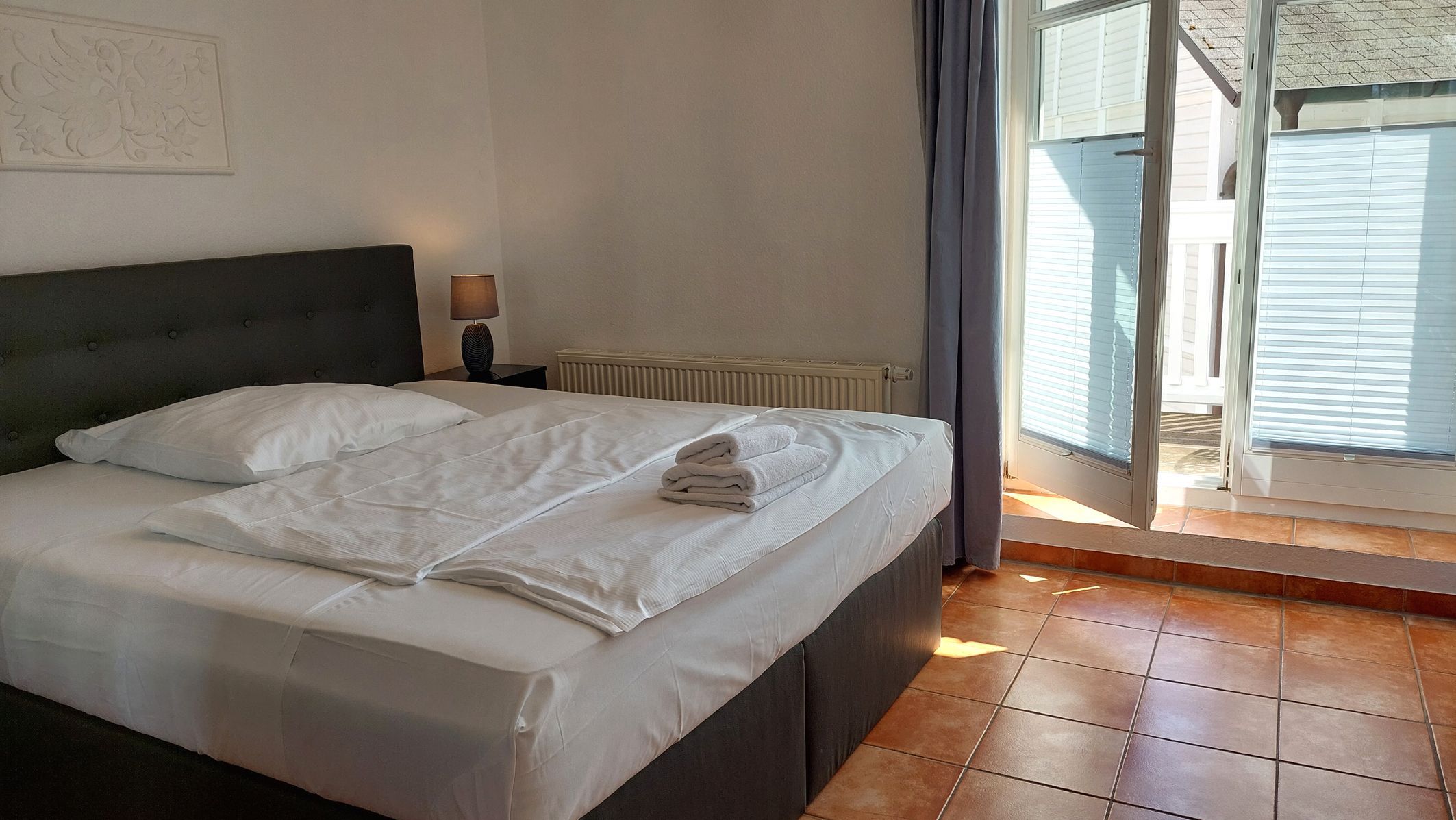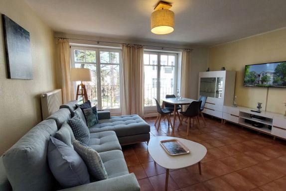 Ihre helle im skandinavischen Stil, 2022 neu eingerichtete Ferienwohnung 90030 befindet sich im 1. OG der Villa Saxonia, nur 150 m bis zum feinsandigen Ostseestrand. Die moderne 2 Zimmer-Wohnung hat eine Größe von ca. 50 qm. Das Badezimmer mit Vintage-Waschtisch, ebenerdiger Dusche und WC, hat ein Fenster. Der ruhige Südbalkon lädt zum Frühstücken ein. Im Schlafraum befindet sich ein Boxspringbett und ein großer Kleiderschrank. Im Wohnraum finden Sie mit dem Schlafsofa (Liegefläche 1,30m x 2.05 cm) 2 weitere Schlafmöglichkeiten. Außerdem finden Sie im Wohnraum neben der gemütlichen Sitzecke einen separaten Essplatz, Flach-TV mit Radio. Die integrierte Küche ist mit Geschirrspülmaschine, Kochgelegenheit, Kühl-Gefrier-Kombination, Mikrowelle Toaster, Kaffeemaschine und Geschirr ausgestattet. Der W-LAN Zugang ist für unsere Gäste gebührenfrei. Ein wohnungseigener kostenfreier Parkplatz (Nr.17) steht für Sie direkt am Haus zur Verfügung. Ihr Vierbeiner ist ebenfalls herzlich Willkommen.