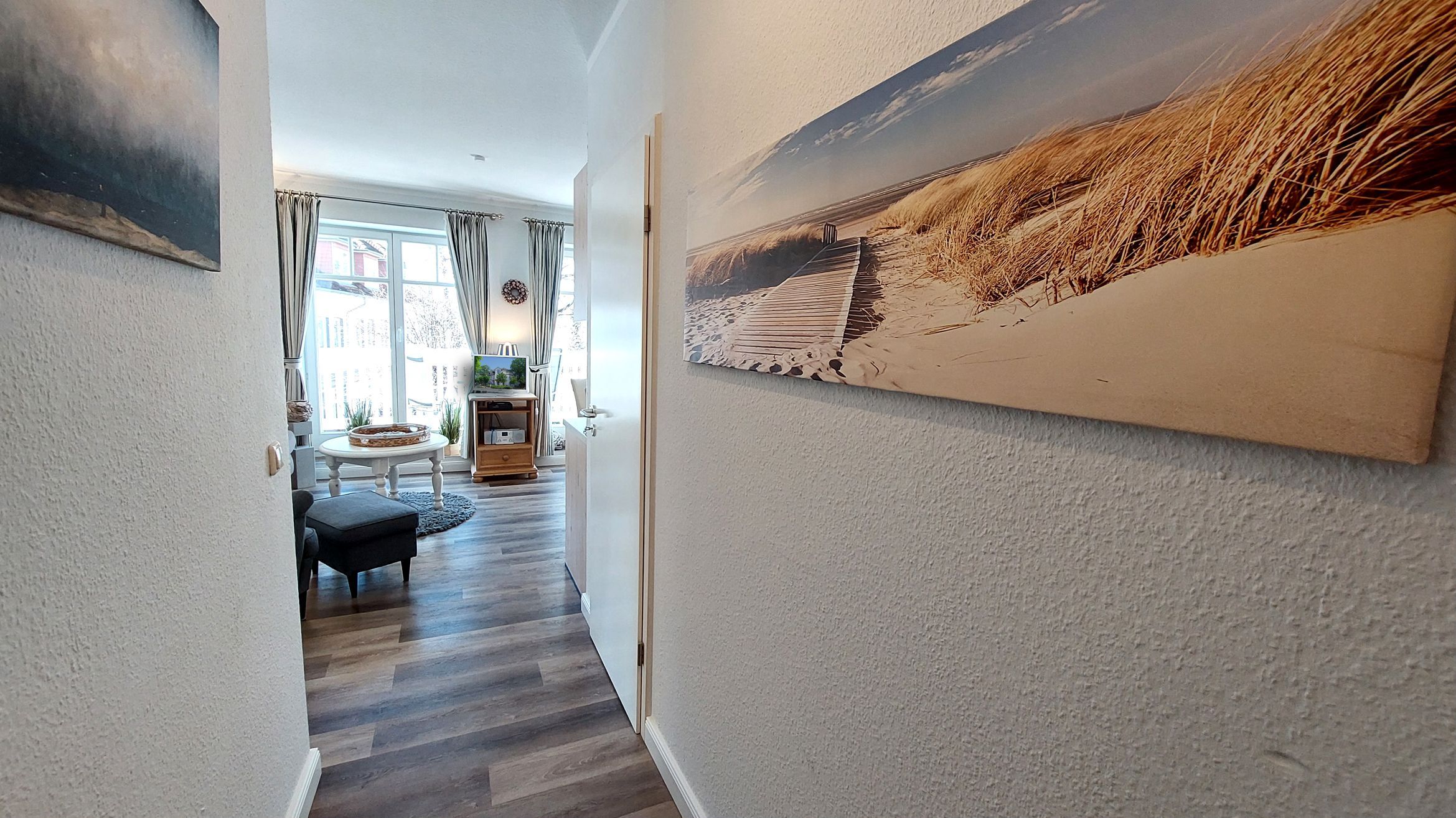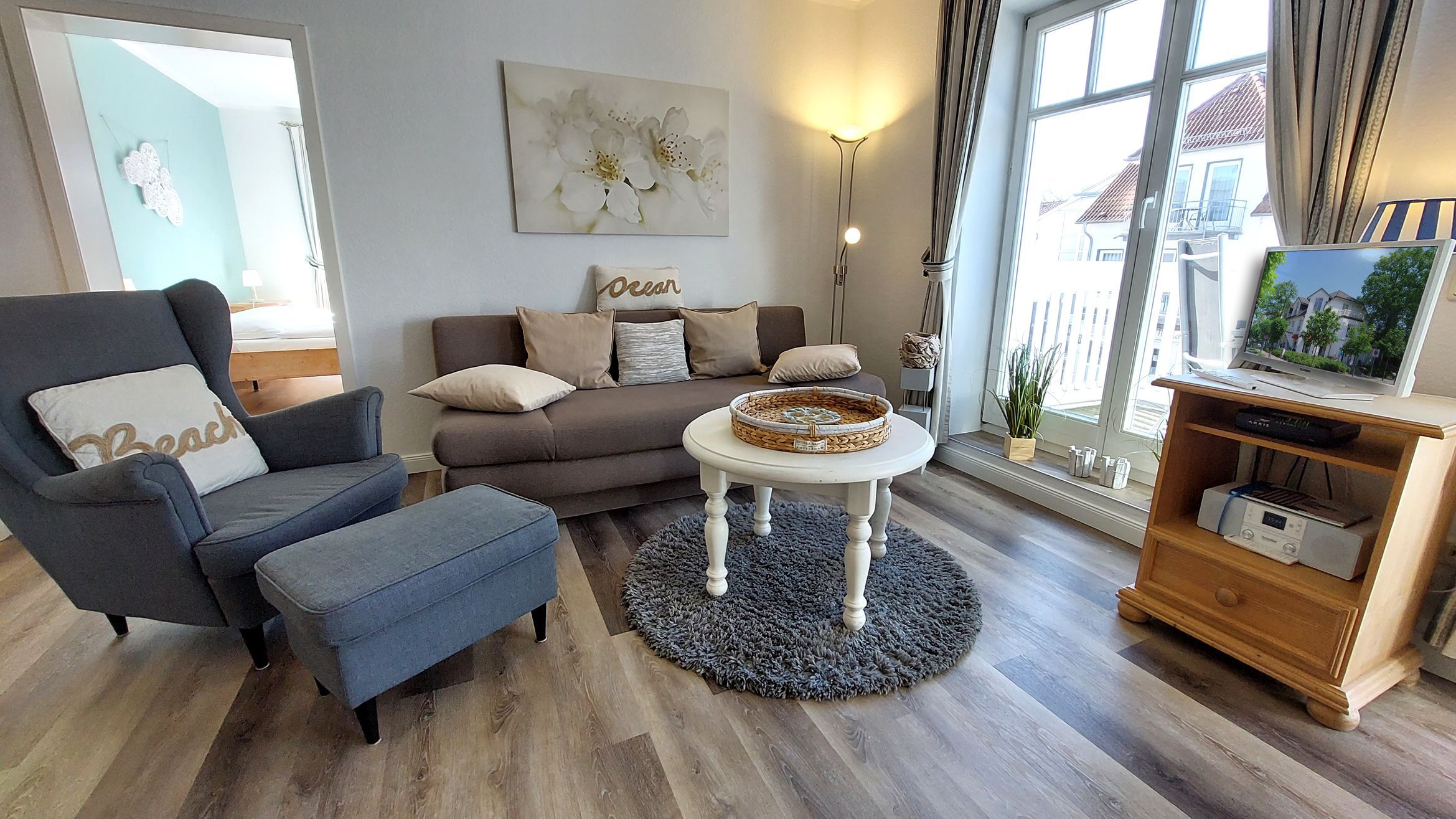 Im Wohnraum kann auf dem Schlafsofa eine weitere Person schlafen. Hier finden Sie neben der Sitzecke, einen separaten Essplatz, Flachbild-TV, Radio und einen kostenfreien WLAN-Zugang. Die Kochzeile ist mit Geschirrspülmaschine, Kochgelegenheit, Mikrowelle, Kühlschrank, diversen Kleingeräten und anderen Küchenhelfern perfekt ausgestattet. Highlights: Ein wohnungseigener Hochstuhl für die kleinen Besucher und wohnungseigener Parkplatz steht für Sie direkt am Haus zur Verfügung.