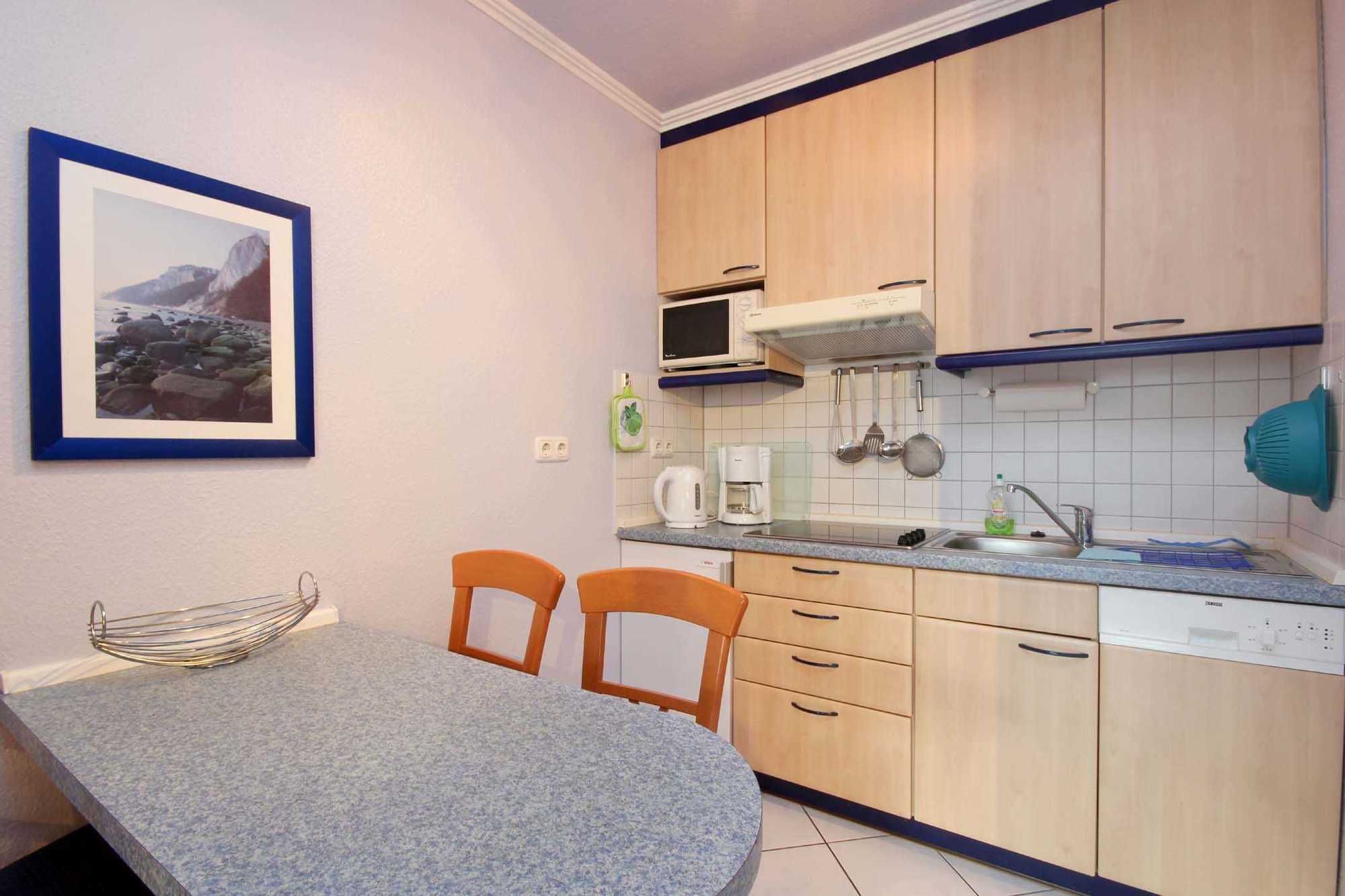 Die Wohnküche beinhaltet u.a. einen Geschirrspüler, Kochfeld, Mikrowelle, Kaffeemaschine, Wasserkocher und Toaster. Unsere Gäste können einen kostenfreien WLAN-Zugang nutzen.