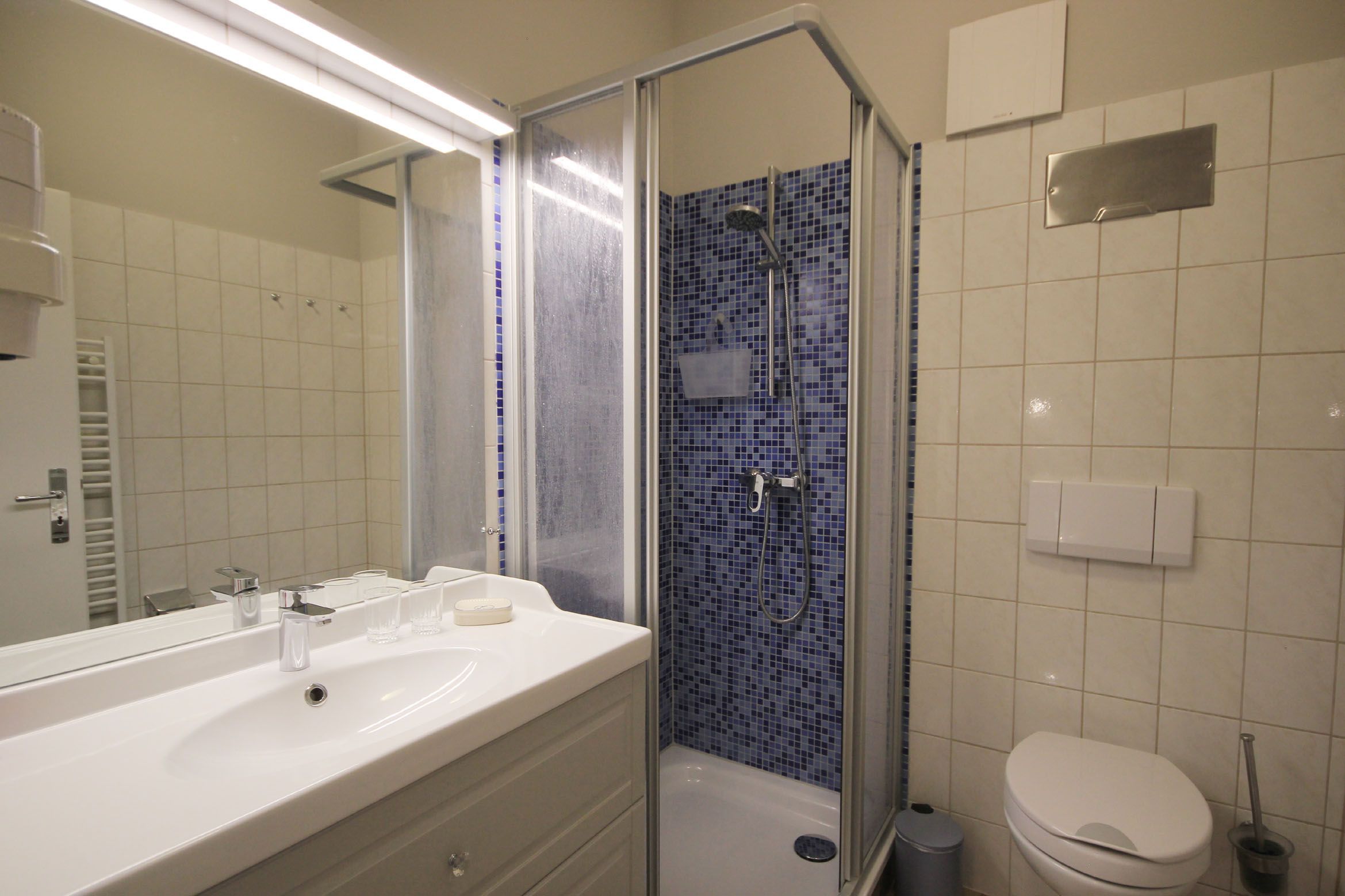 Darüber hinaus bereiten die zusätzlichen Verdunklungsstoffe ein angenehmes Schlafambiente. Die technische Ausstattung umfasst einen Fachbildfernseher und einen kostenfreien WLAN-Zugang und für die ruhigen Stunden eine kleine Büchersammlung. Die Küchenzeile ist mit Cerankochfeld, Kühlschrank mit kleinem Gefrierfach, Kaffeemaschine, Toaster, Wasserkocher und weiteren Küchenhelfern komplett ausgestattet. Ein wohnungseigener Parkplatz steht Ihnen direkt hinterm Haus zur Verfügung. Haustiere sind herzlich willkommen.