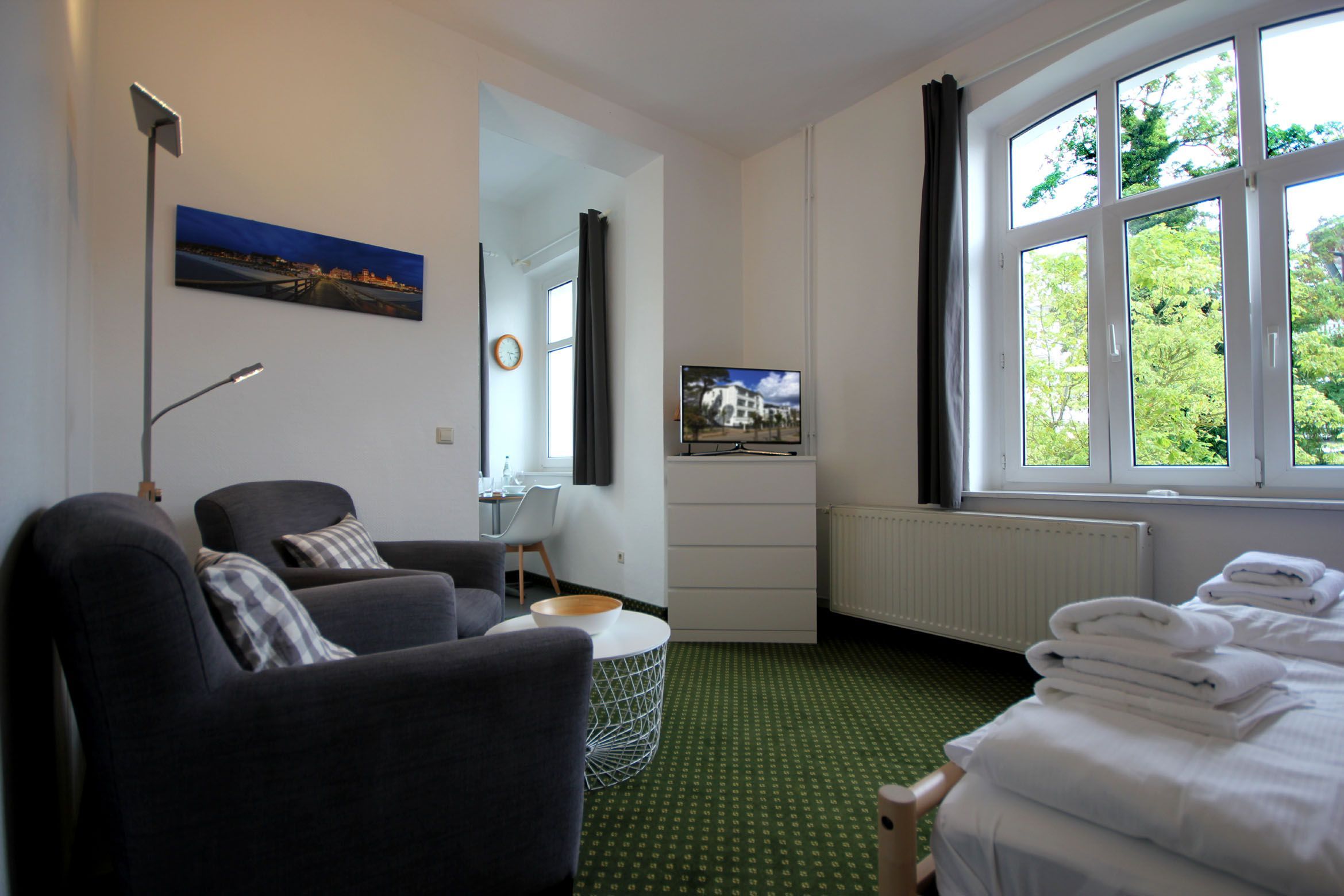 Diese freundliche Wohnung ist aufgeteilt in einen kombiniertem Wohn- und Schlafbereich, einer separaten Küche sowie ein modernes Duschbad mit Waschtisch und WC. Der Schlaf- und Wohnraum begrüßt Sie mit einem Flachbild-TV, zwei gemütlichen Sesseln, einem Doppelbett (1,60m x 2m) sowie einem Kleiderschrank. Die neuwertige Küchenzeile ist mit Kühlschrank mit kleinem Gefrierfach, Cerankochfeld, Nespresso-Maschine, Backofen, Geschirrspüler, Kaffeemaschine, Wasserkocher und Toaster komplett ausgestattet. Vom Essplatz genießen Sie einen schönen Blick bis zur Strandpromenade. Highlights: Kostenfreies WLAN sowie ein wohnungseigener PKW-Stellplatz direkt am Haus. Haustiere sind herzlich willkommen.