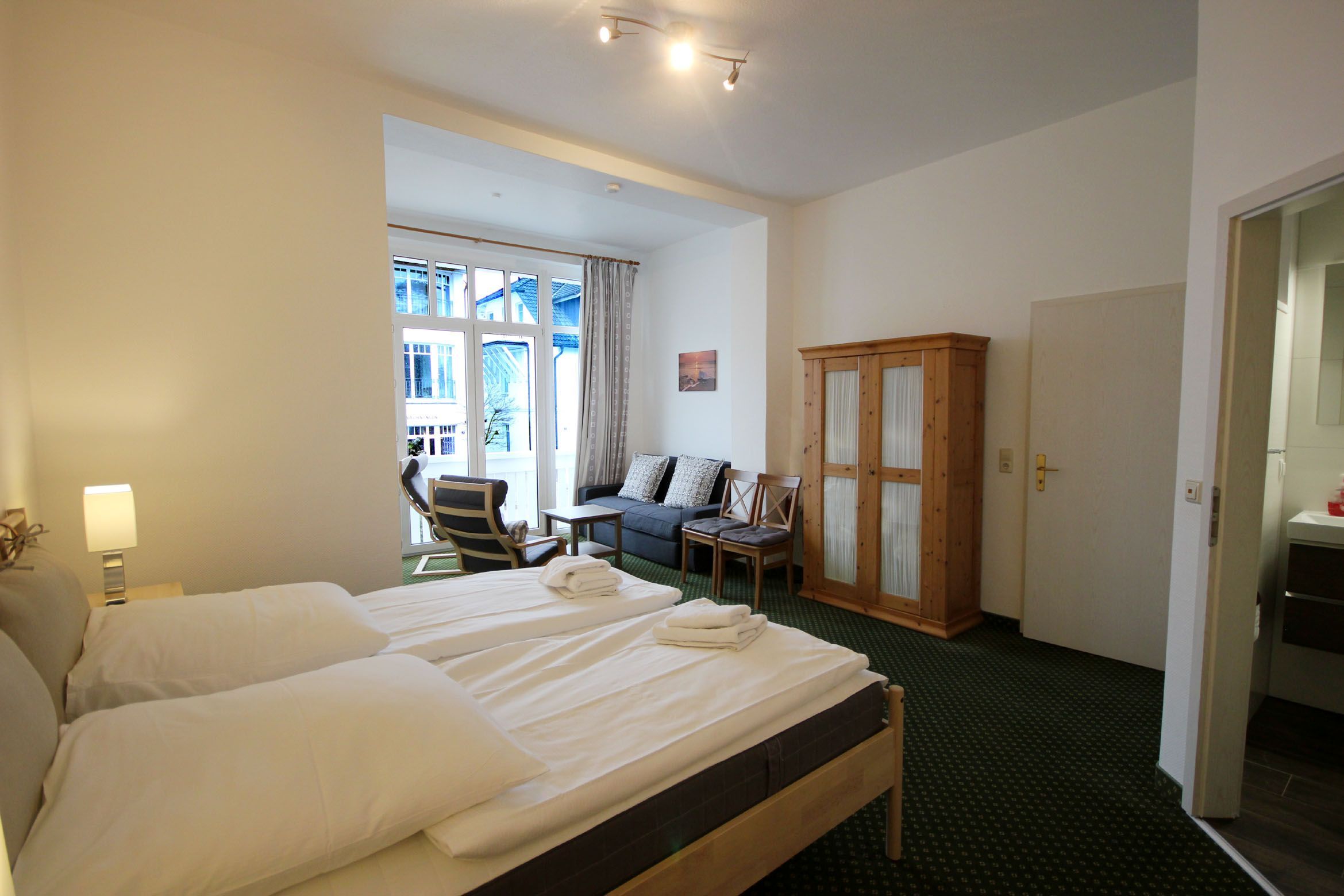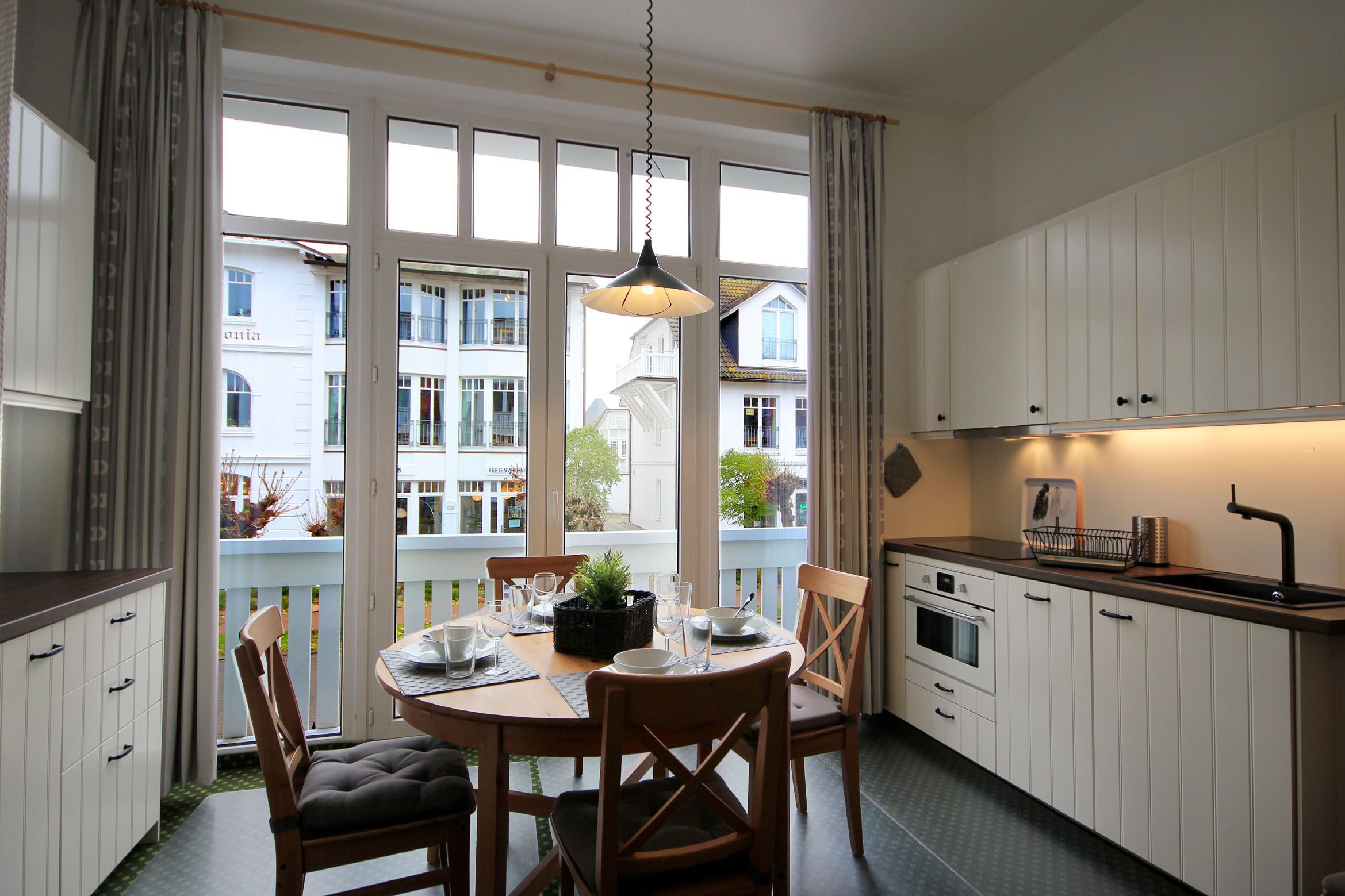 Diese moderne Wohnung ist aufgeteilt in einen geräumigen Wohnbereich mit integrierter Küche und Essplatz, ein Schlafzimmer mit geschlossener Loggia sowie ein modernes Duschbad mit Waschtisch und WC. Der Wohnraum begrüßt Sie mit einem Flachbild-TV, einer Schlafcouch (1,60m x 2m) und zwei gemütlichen Sesseln. Die neuwertige Küchenzeile ist mit Kühlschrank mit kleinem Gefrierfach, Cerankochfeld, Nespresso-Maschine, Backofen, Geschirrspüler, Kaffeemaschine, Wasserkocher und Toaster komplett ausgestattet. Vom Essplatz genießen Sie einen schönen Blick auf die Wylichstraße. Dem Schlafzimmer mit Doppelbett (1,60m x 2m), Kleiderschrank, Sitzmöglichkeiten und einem zusätzlichen Schlafsofa (1,60m x 2m) schließt sich zugleich das Duschbad an. Highlights: Kostenfreies WLAN sowie ein wohnungseigener PKW-Stellplatz direkt am Haus. Haustiere sind herzlich willkommen.
