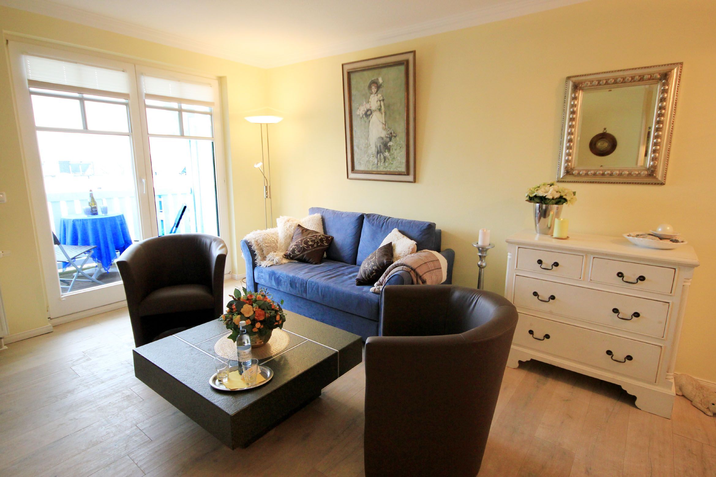 Ihre gemütliche Ferienwohnung 9RB7 in der Villa Grieben befindet sich in der ersten Etage des Hauses. Die 2 Zimmerwohnung verfügt über ca. 48 qm und ist mit bis zu 4 Personen belegbar. Vom überdachten und in Richtung Südwest gelegenen Balkon genießen Sie einen weiten Blick über die Dächer von Binz. Neben dem Wohnraum gibt es eine separate Küche, ein Schlafzimmer sowie ein Duschbad mit Waschbecken und WC. Der Schlafraum ist mit einem Doppelbett (1,60m x 2m) und einem großen Kleiderschrank ausgestattet. Im Wohnraum mit Zugang zum Balkon bietet eine Schlafcouch eine weitere Schlafmöglichkeit für zwei Personen. Außerdem finden Sie im modernen Wohnbereich zwei bequeme Sessel, einen Flachbild TV sowie einen kostenfreien WLAN-Zugang. Die separate Küche begrüßt Sie mit einer komplett ausgestatteten Küchenzeile u.a. mit Geschirrspüler, Backofen, Mikrowelle, Kühlschrank, Gefrierschrank, ausreichend Geschirr und diversen Kleingeräten.