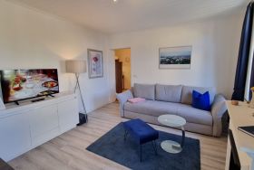 Die ansprechende und hochwertig eingerichtete 52 m² große 2-Zimmer Ferienwohnung ist über das Treppenhaus am Eingang 30A in der Strandstraße im 1. Obergeschoss zu erreichen.