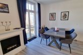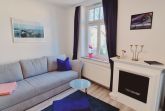 Das Wohnzimmer ist mit einem Esstisch für bis zu 4 Personen und einer Sitzgruppe eingerichtet. Die separate Couch mit Bettfunktion lädt zum Verweilen ein und der vollfunktionsfähige Ethanol-Kamin verspricht gemütliche Abende. Im modern gestalteten Schlafzimmer erwartet Sie ein neues Boxspringbett, das keine Wünsche offen lässt.