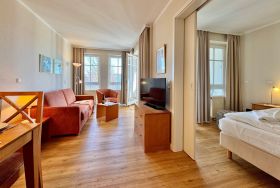 Für Fahrräder gibt es einen trockenen und sicheren Stellplatz im Fahrradkeller. Ein WLAN Anschluss ist ebenfalls vorhanden und der TV bietet sogar Sky-Sender. Ein Tiefgaragenstellplatz kann gegen Aufpreis genutzt werden und für einen angenehmen Start in den Tag gibt es einen Brötchenservice.