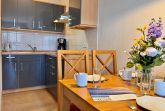 Die Wohnung verfügt über einen Flachbild-TV sowie eine Kaffeemaschine (Filter) und die Bettwäsche ist bereits inklusive. Auch Haustiere sind herzlich willkommen. Der Balkon lädt zum Entspannen ein und die offene Wohnküche bietet die Möglichkeit, gemütliche Mahlzeiten zuzubereiten.
