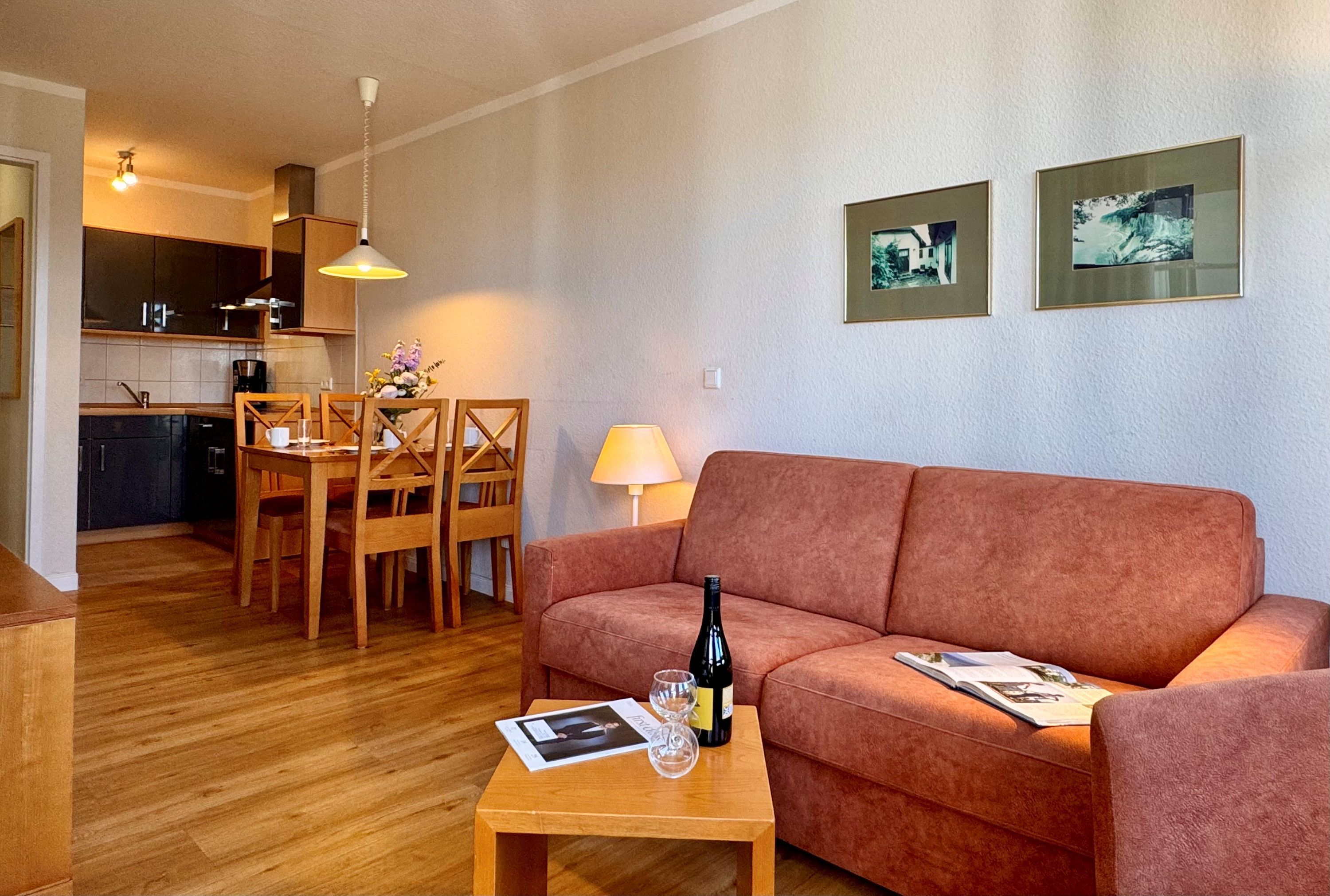 Die Ferienunterkunft Fewo 316 befindet sich im Seepark Sellin und bietet Platz für maximal 4 Personen. Die 44 m² große Wohnung befindet sich im Haus Having in der 1. Etage und über einen Aufzug gut zu erreichen. Das Schlafzimmer bietet ausreichend Platz für erholsame Nächte und das Badezimmer ist mit allen nötigen Utensilien ausgestattet.