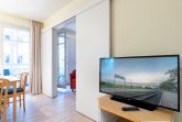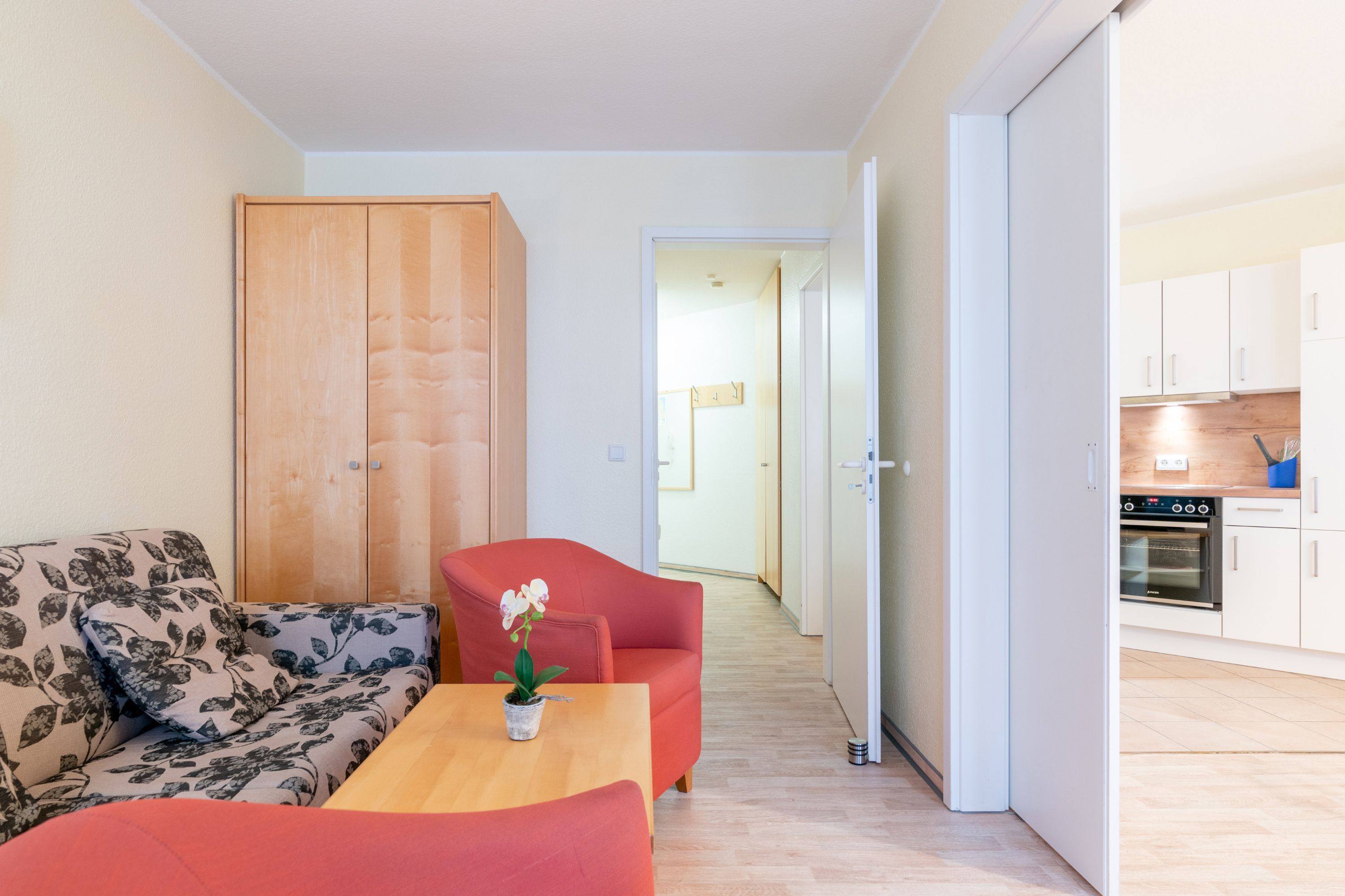 Die Ausstattung der Wohnung umfasst unter anderem einen Flachbildfernseher, eine Kaffeemaschine (Filter), eine Mikrowelle und einen Geschirrspüler. Die Bettwäsche ist bereits im Preis inklusive. Ein großer Pluspunkt ist der Balkon, auf dem man gemütlich die frische Luft genießen kann. Die offene Wohnküche bietet ausreichend Platz zum Kochen und Essen.