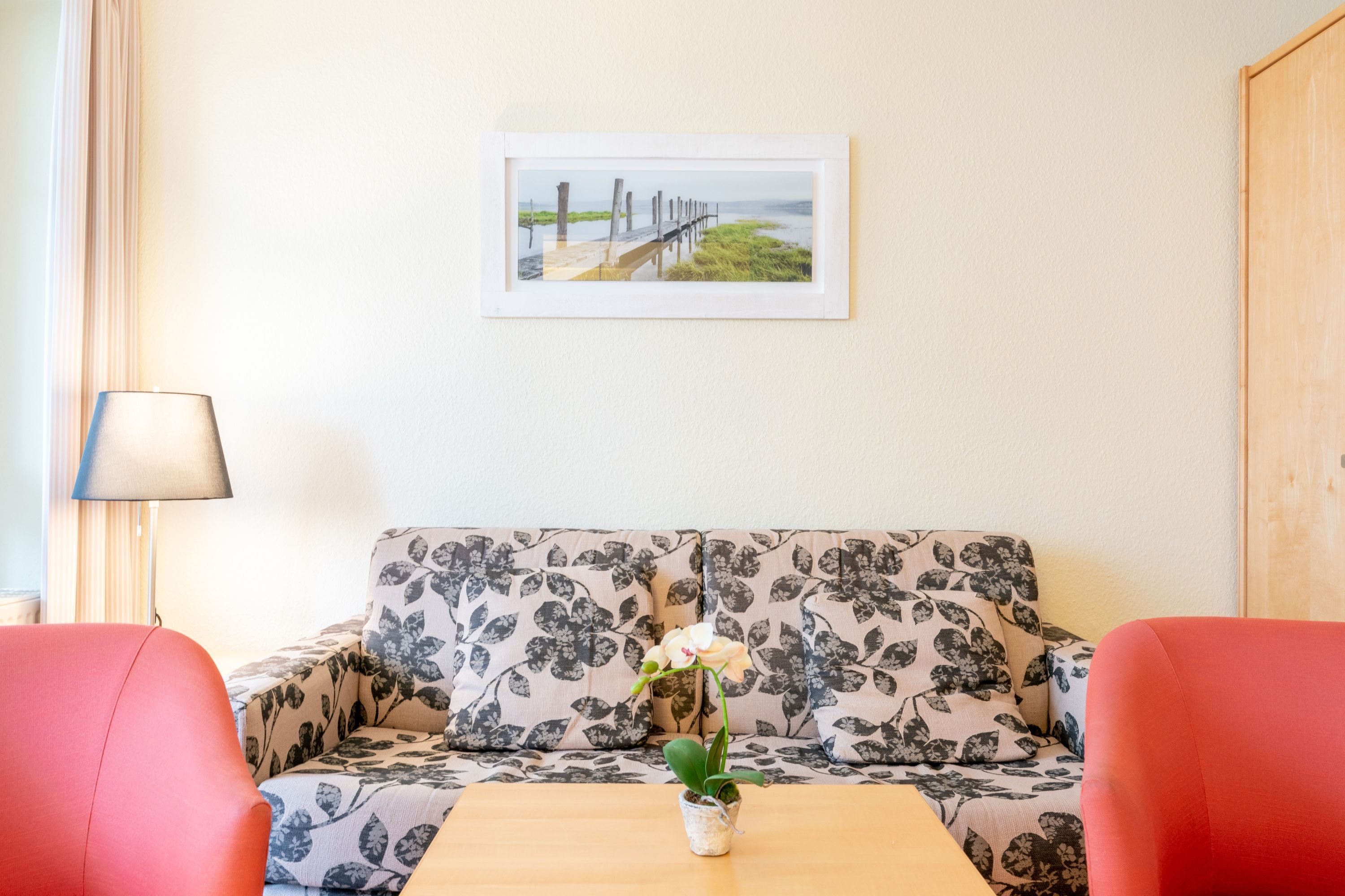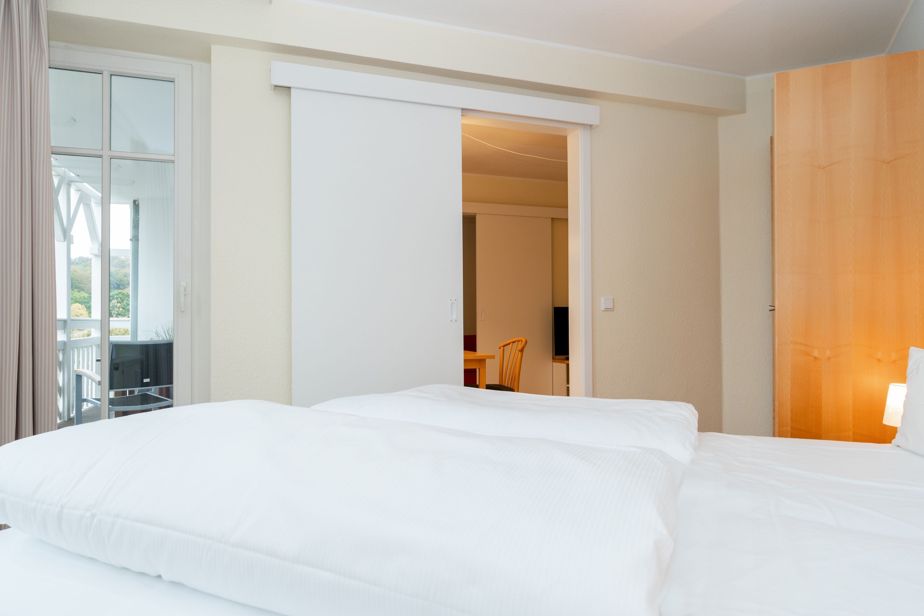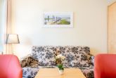 Für Fahrräder steht ein Fahrradkeller zur Verfügung und auch WLAN ist in der Wohnung vorhanden. Für Unterhaltung sorgt der Fernseher mit Sky-Sendern. Im Badezimmer findet man eine Badewanne vor. Außerdem gibt es einen Tiefgaragenstellplatz, der den Gästen zur Verfügung steht. Ein Brötchenservice wird ebenfalls angeboten.