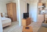 Die Wohnung ist mit einem TV-Flachbild, einer Kaffeemaschine (Filter), einer Mikrowelle und einer offenen Wohnküche ausgestattet. Die Bettwäsche ist bereits inklusive und ein Balkon lädt zum Entspannen ein. Für die sichere Aufbewahrung von Fahrrädern steht ein Fahrradkeller zur Verfügung. Auch ein WLAN Anschluss sowie TV mit Sky-Sendern sind in der Wohnung vorhanden.