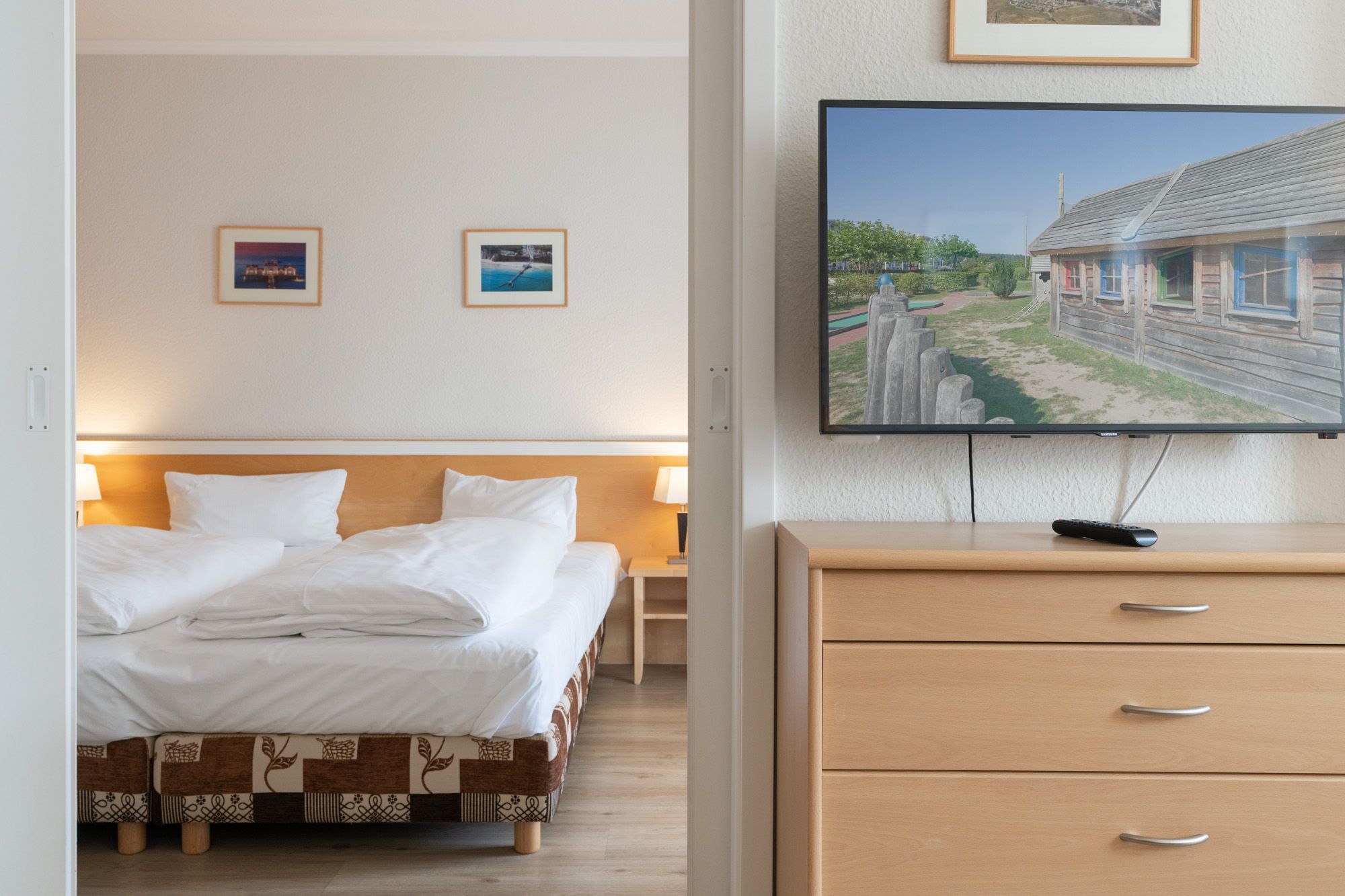 Die Ferienwohnung Fewo 352, Seepark Sellin, befindet sich im Haus Having in Sellin. Auf einer Fläche von 44 m² bietet sie Platz für maximal 3 Personen. Die Wohnung befindet sich in der 2. Etage und ist über einen Aufzug erreichbar. Sie verfügt über ein Schlafzimmer und ein Badezimmer. Die Ausstattung umfasst einen Flachbildfernseher, eine Kaffeemaschine (Filter), eine Mikrowelle sowie Bettwäsche, die bereits im Preis inkludiert ist. Vom Balkon aus genießen Sie einen schönen Ausblick auf die Umgebung. Die offene Wohnküche bietet ausreichend Platz zum Kochen und Essen. Im Fahrradkeller können Sie Ihre Fahrräder sicher abstellen. Der WLAN-Anschluss sowie der TV mit Sky-Sender sorgen für Unterhaltung. Ein Tiefgaragenstellplatz steht ebenfalls zur Verfügung. Für einen stressfreien Start in den Tag können Sie den Brötchenservice nutzen. Einkaufsmöglichkeiten befinden sich nur 50 m entfernt, der Strand ist ca. 900 m entfernt. Auch ein Bäcker, Minigolf, ein Restaurant sowie die AHOI! Bade- & Erlebniswelt sind in unmittelbarer Nähe. Die Seebrücke und der Schiffsanleger sind ca. 900 m bzw. 500 m entfernt. Die Bushaltestelle ist etwa 100 m entfernt.