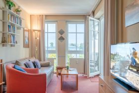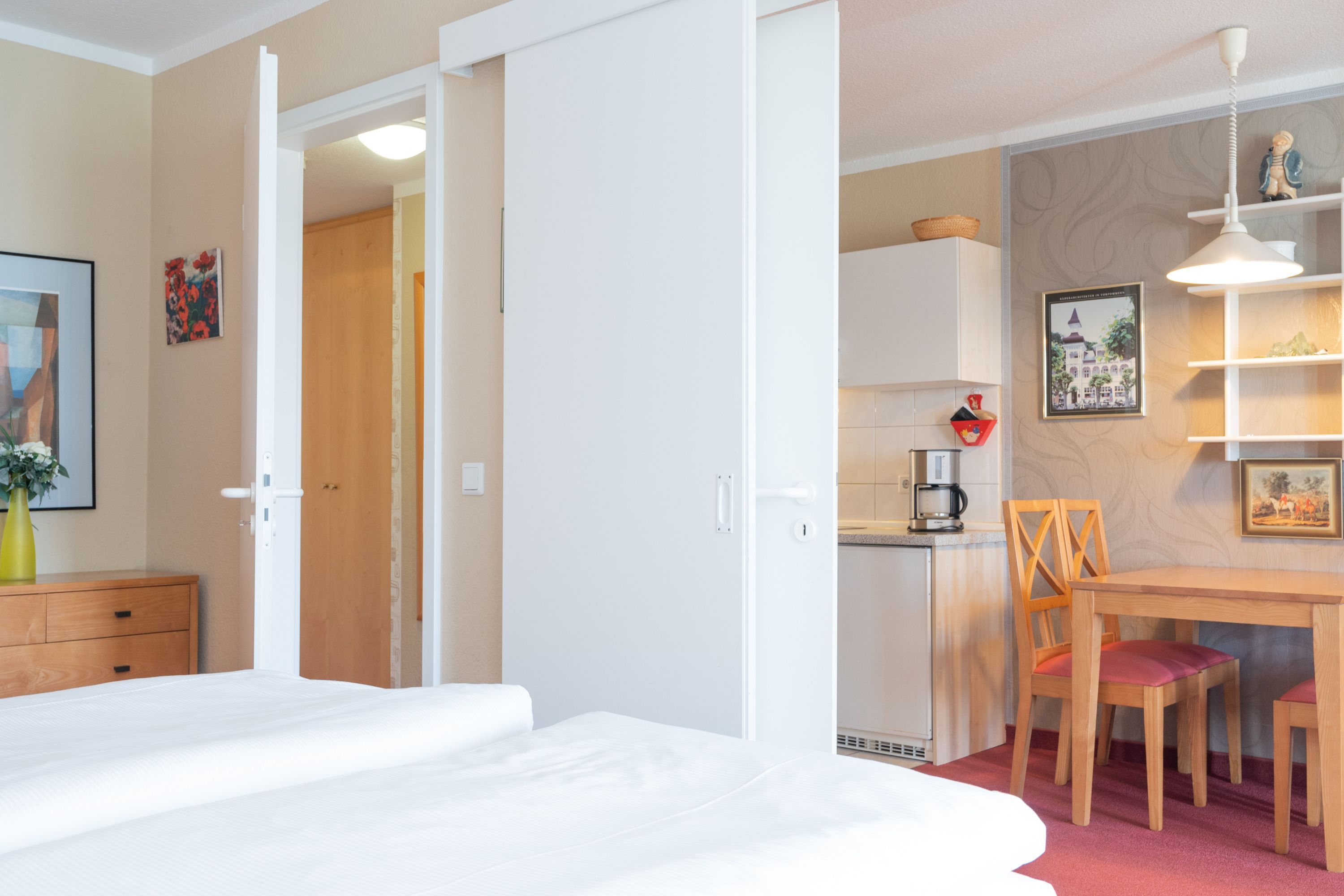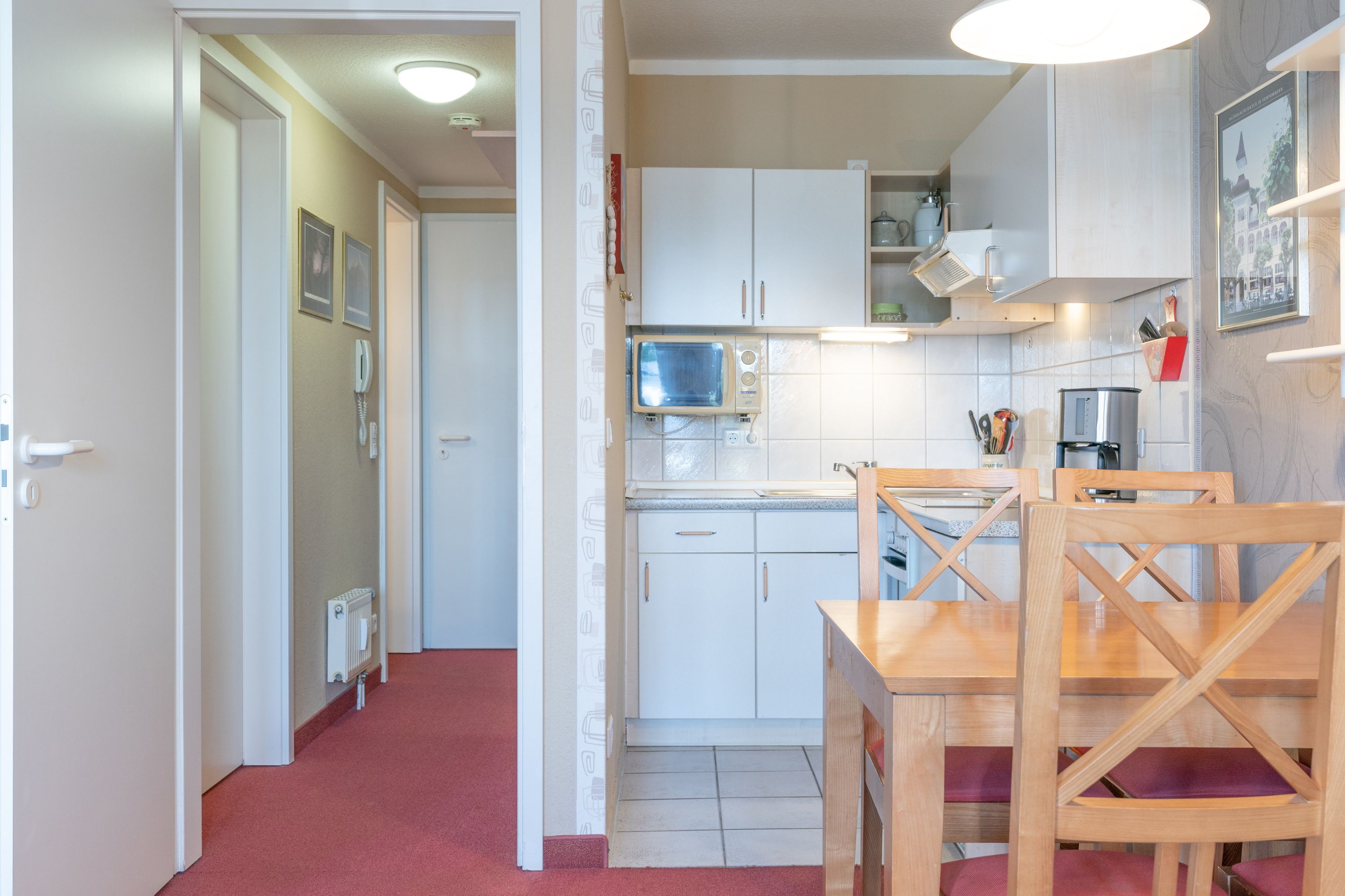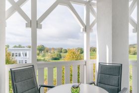 Nach einem erlebnisreichen Urlaubstag können Sie auf dem Balkon in Südwestlage Platz nehmen. Der Ausblick und die Sitzgruppe sorgen hier für ein wunderbares Urlaubsgefühl. Im Nichtraucher-Apartment sind keine Haustiere gestattet.