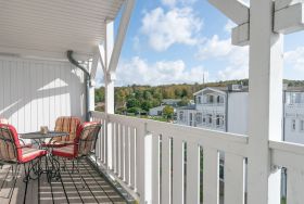 Auf dem Balkon in Südostlage können Sie nach einem ereignisreichen Tag entspannen und den Ausblick sowie die Sitzgruppe genießen. Das Nichtraucher-Apartment erlaubt keine Haustiere.