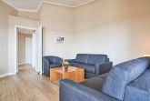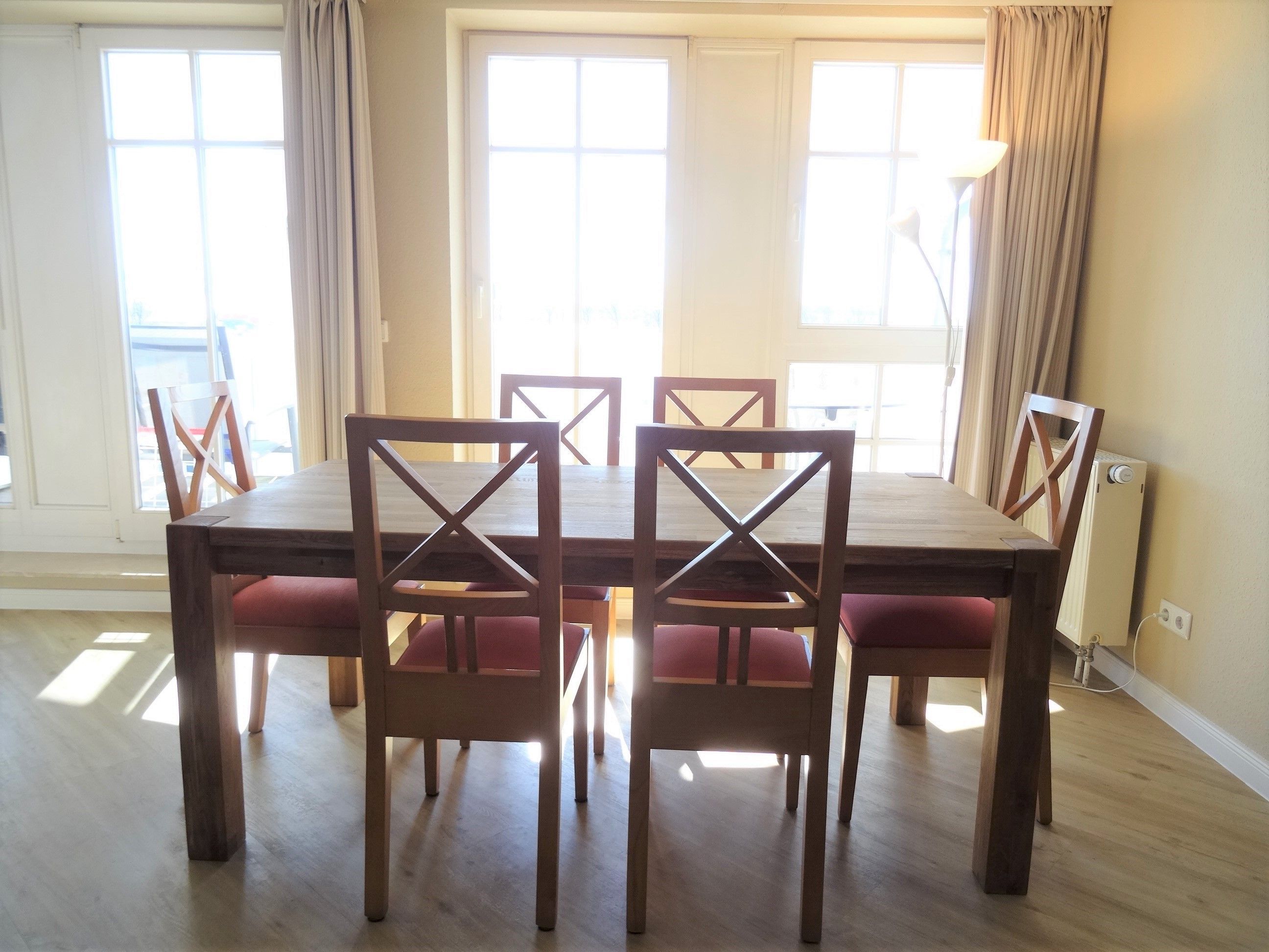 Zur weiteren Ausstattung gehören ein Flachbildfernseher, eine Kaffeemaschine (Filter), eine Mikrowelle, ein Geschirrspüler und Bettwäsche, die bereits im Preis inkludiert ist. Für gemütliche Abende steht ein Balkon zur Verfügung und die offene Wohnküche lädt zum gemeinsamen Kochen ein. Auch ein Fahrradkeller sowie ein WLAN-Anschluss sind vorhanden. Gäste können zudem kostenfrei die Sky-Sender auf dem Fernseher nutzen und sich in der Badewanne entspannen. Ein Tiefgaragenstellplatz kann gegen Aufpreis genutzt werden und für frische Brötchen am Morgen sorgt der Brötchenservice.