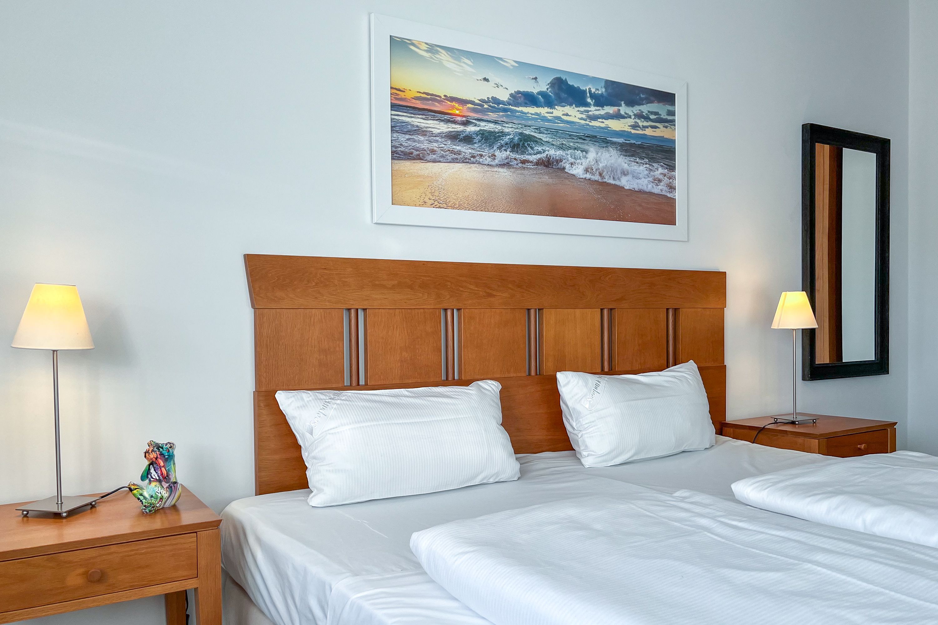 Die beiden Schlafzimmer sind mit Verdunklungsmöglichkeiten ausgestattet, haben jeweils ein Doppelbett und in einem Schlafzimmer kommen Sie zudem in den Genuss eines Fernsehers.