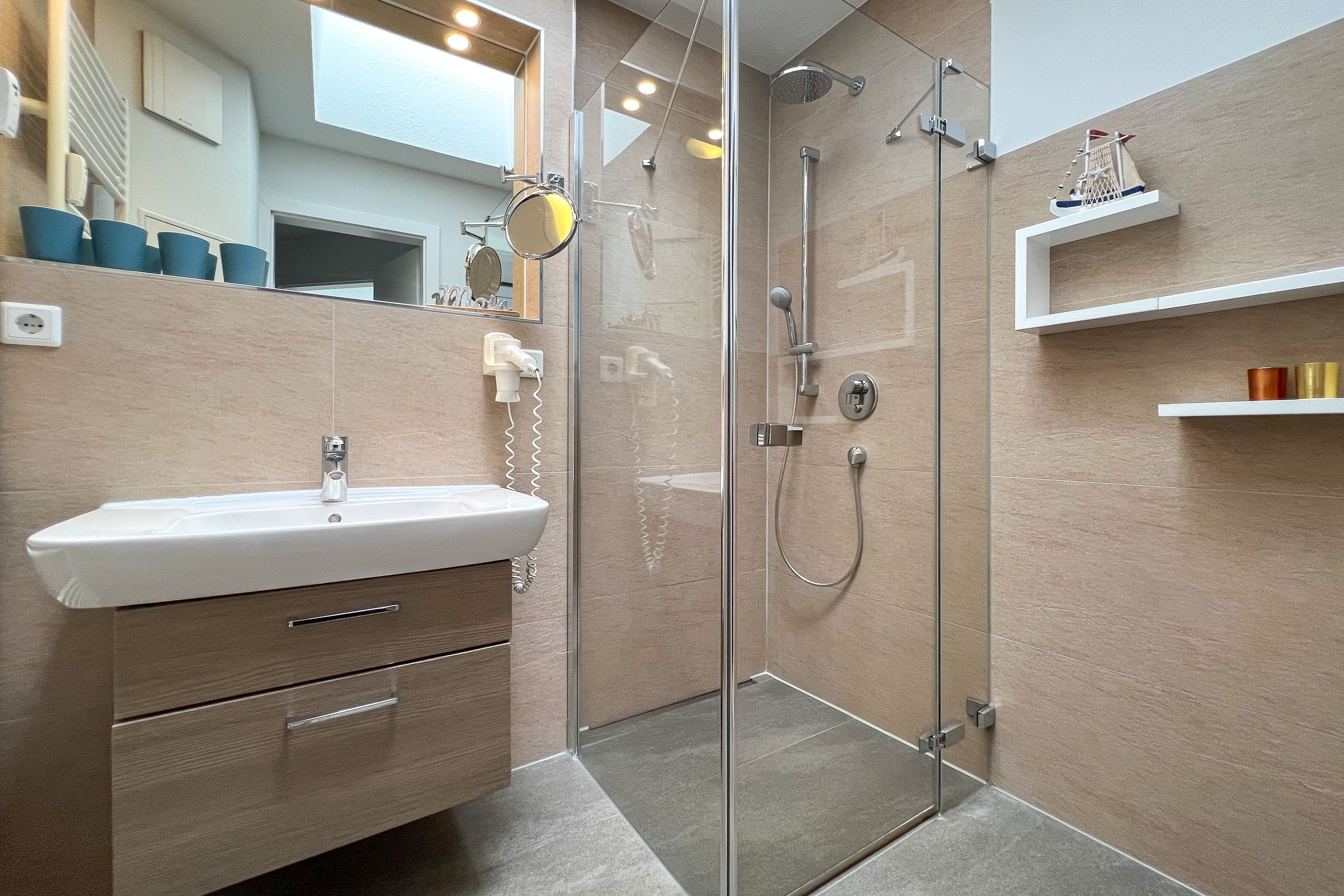 Die neue offene Küche ist komplett mit hochwertigen Elektrogeräten der Firma Miele ausgestattet, bietet einen Backofen, einen Geschirrspüler, eine Kaffeemaschine und einen Toaster. Das geräumige Badezimmer verfügt über eine ebenerdige Dusche, eine Fußbodenerwärmung, einen Föhn und einem Kosmetikspiegel. Das WC und ein kleines Waschbecken finden Sie in einem extra Badezimmer.