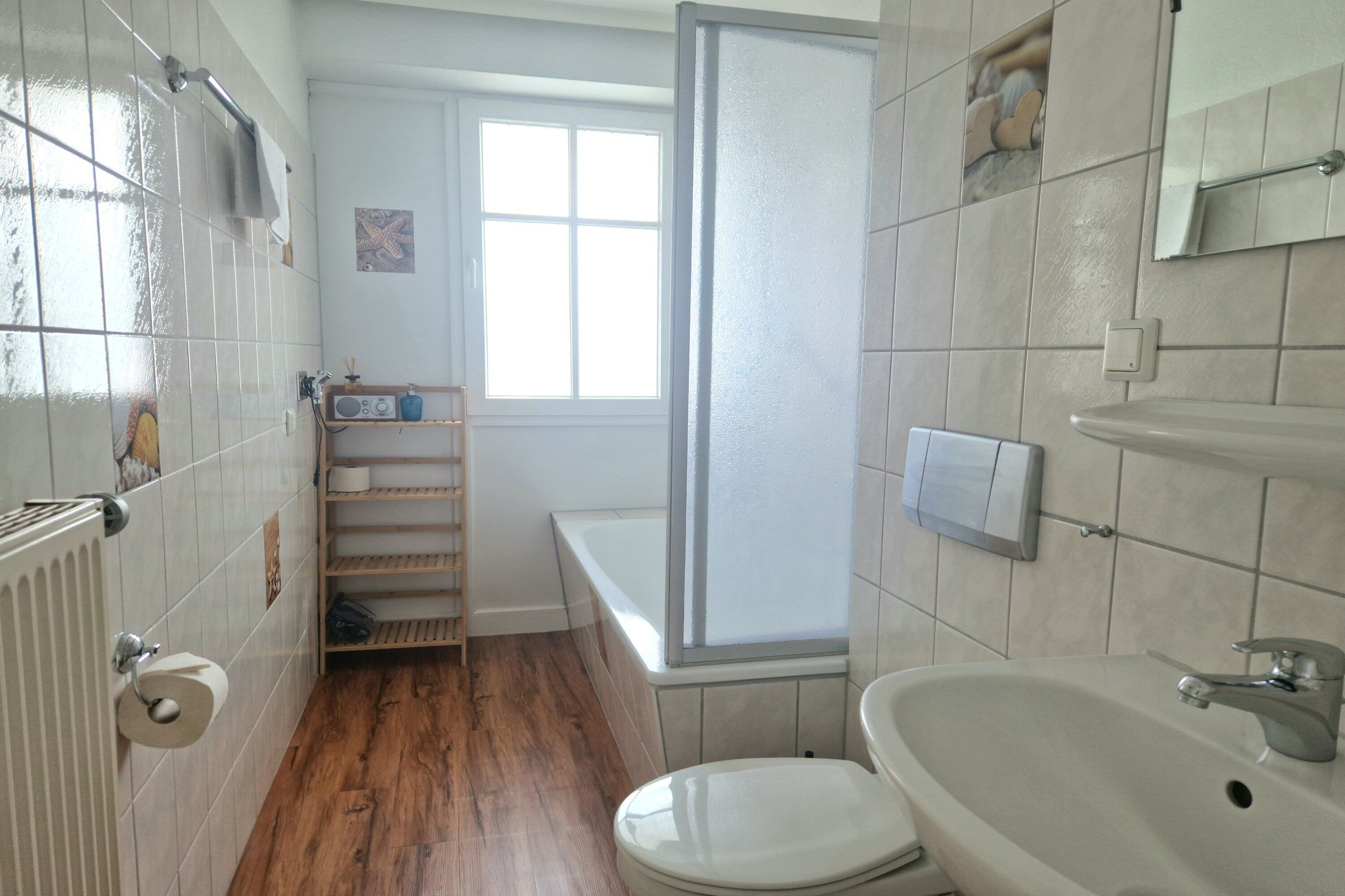 Die Ausstattung umfasst einen Flachbildfernseher, eine Kaffeemaschine (Filter), eine Mikrowelle und einen Geschirrspüler. Bettwäsche ist bereits im Preis inklusive. Vom Balkon aus haben Sie einen schönen Blick auf die Umgebung. Die offene Wohnküche lädt zum gemütlichen Beisammensein ein. Für die sichere Aufbewahrung Ihrer Fahrräder steht Ihnen ein Fahrradkeller zur Verfügung. Auch ein WLAN-Anschluss ist vorhanden und ermöglicht Ihnen die Nutzung des TV-Geräts mit Sky-Sendern. Im Badezimmer können Sie in der Badewanne entspannen.