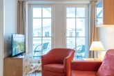 Nach einem erlebnisreichen Urlaubstag können Sie auf dem Balkon in Nordwestlage Platz nehmen. Der Ausblick und die Sitzgruppe sorgen hier für ein wunderbares Urlaubsgefühl. Im Nichtraucher-Apartment ist ein mitreisendes Haustier gestattet.