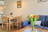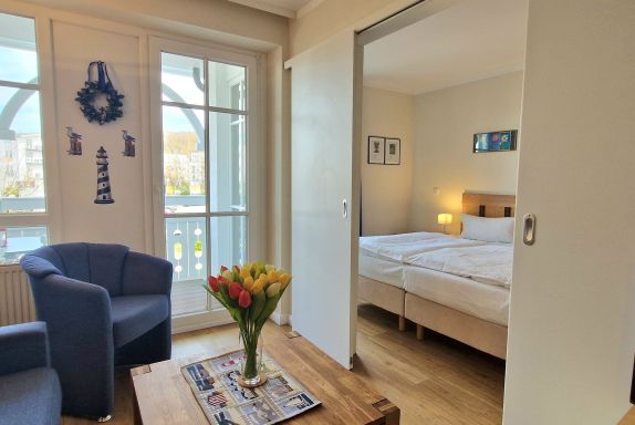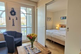 Die Wohnung ist mit kostenfreiem WLAN ausgestattet und die Erstausstattung an Bettwäsche ist im Preis enthalten. Im Schlafzimmer, das durch Verdunklung für einen erholsamen Schlaf sorgt, steht ein Doppelbett zur Verfügung. Im Wohnzimmer gibt es zudem eine Doppelschlafcouch. Das Badezimmer ist mit Dusche, WC, Föhn und Kosmetikspiegel ausgestattet. Die offene Küche verfügt über eine Mikrowelle, Kaffeemaschine und Toaster. Ein Fernseher mit 3 Sky-Sendern rundet die Ausstattung ab. Auf dem Balkon in Nordostlage können Sie den Ausblick und die Sitzgruppe genießen. Rauchen und Haustiere sind in der Nichtraucherwohnung nicht gestattet.