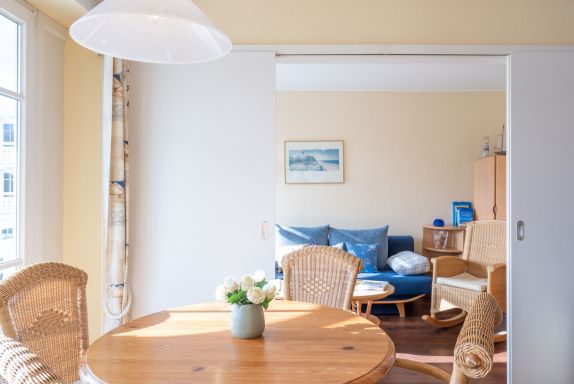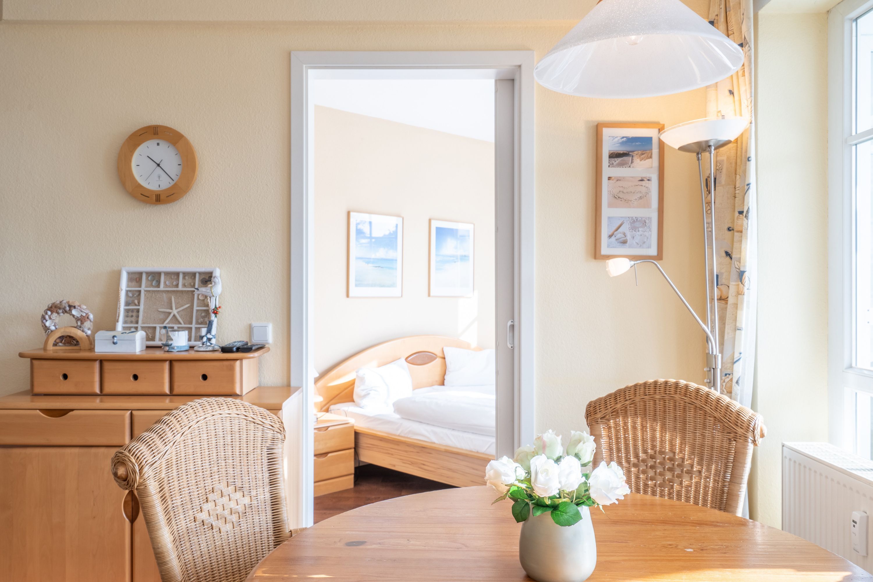Auf dem Balkon in Südostlage können Sie den Ausblick und die Sitzgruppe nutzen, um das Urlaubsgefühl zu genießen. Die Ferienwohnung ist ein Nichtraucher-Apartment und Haustiere sind nicht erlaubt.