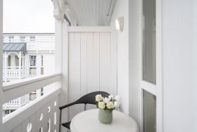Nach einem erlebnisreichen Urlaubstag können Sie auf dem Balkon in Südwestlage Platz nehmen. Im Nichtraucher-Apartment sind keine Haustiere gestattet.