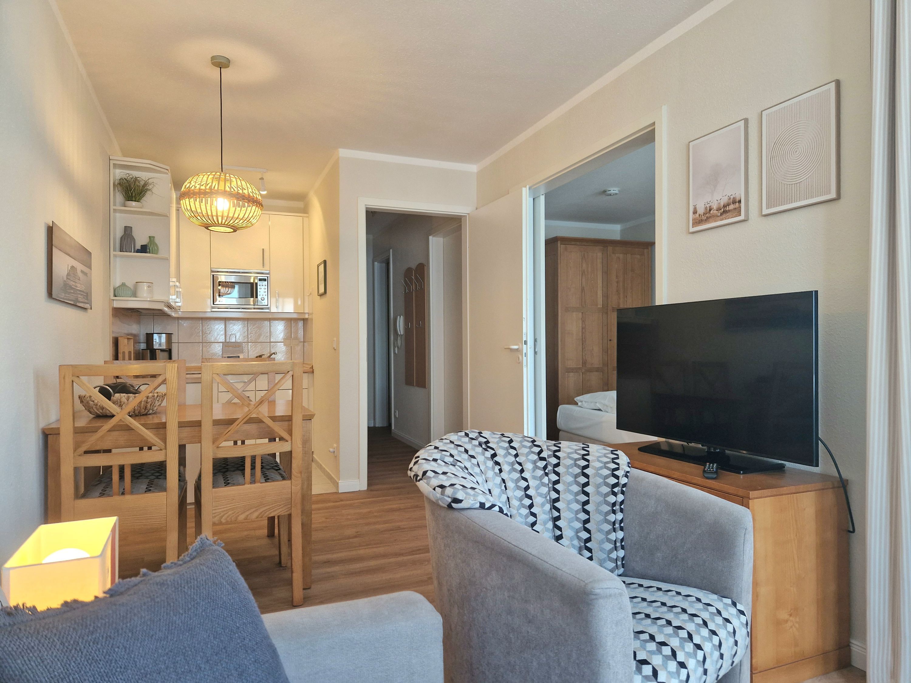 Nach einem erlebnisreichen Urlaubstag können Sie auf dem Balkon in Südostlage Platz nehmen. Der Ausblick und die Sitzgruppe sorgen hier für ein wunderbares Urlaubsgefühl. Im Nichtraucher-Apartment ist ein mitreisendes Haustier gestattet.