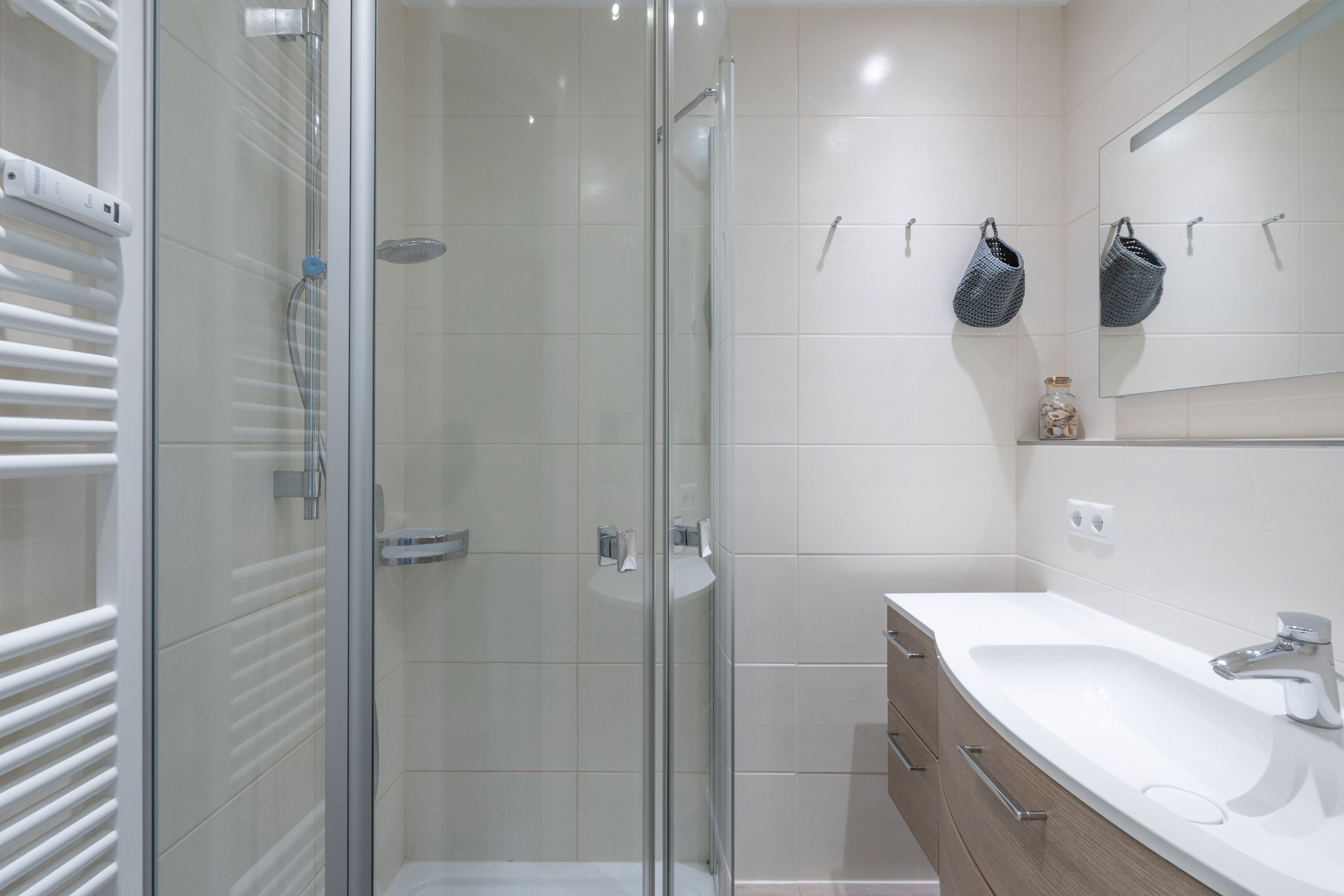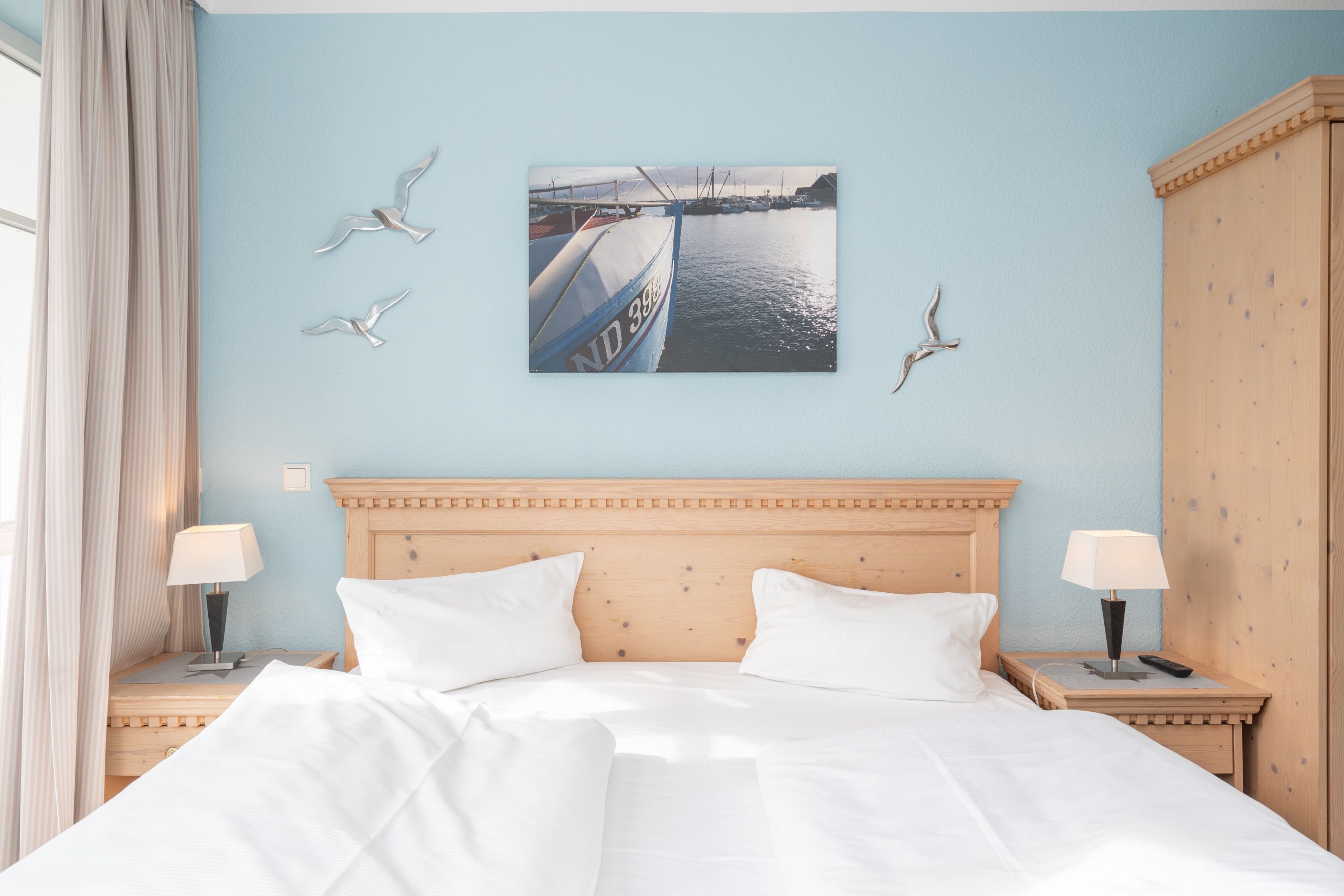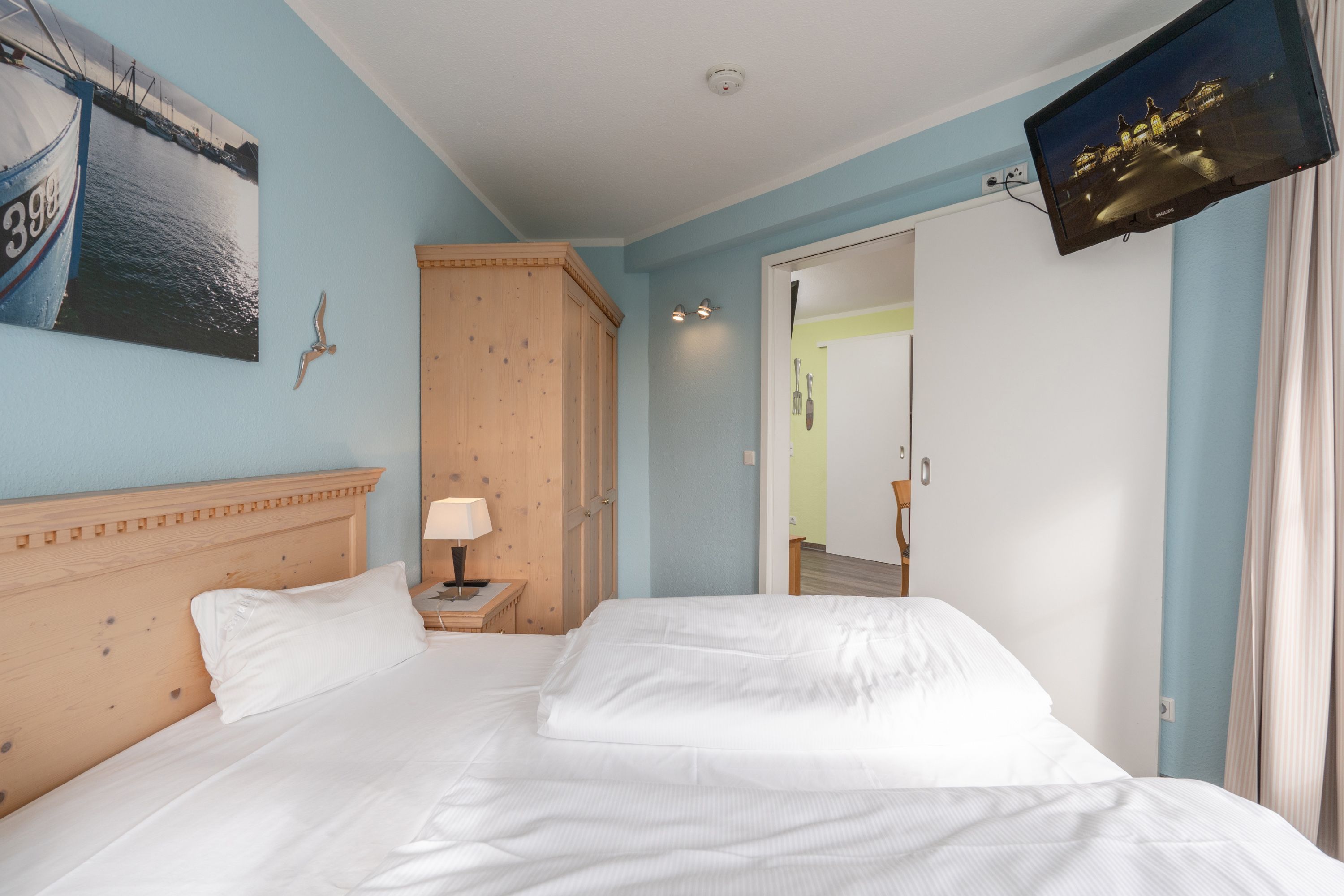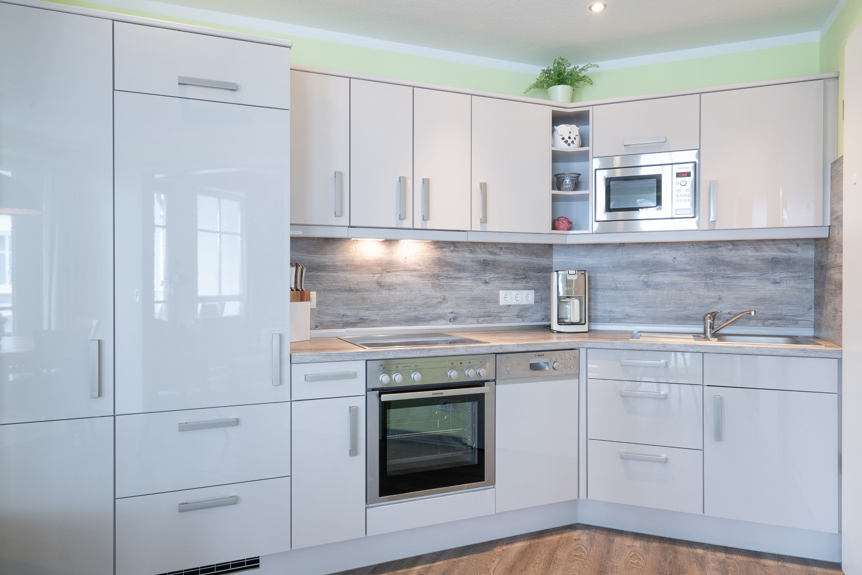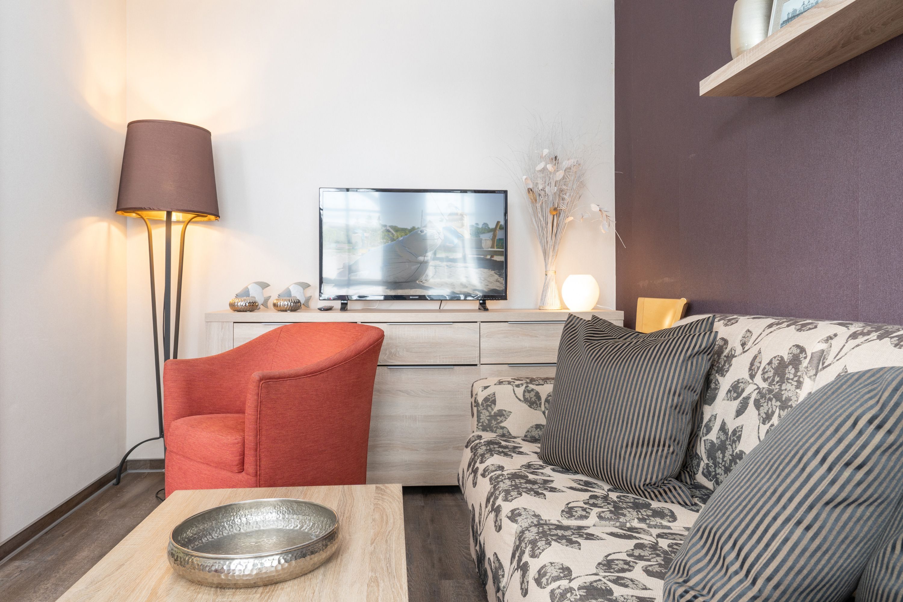 Die Ferienwohnung verfügt über 3 Fernseher, kostenfreies WLAN und die Erstausstattung an Bettwäsche ist inklusive. Das Schlafzimmer mit Verdunklung verfügt über ein Doppelbett, im Wohnzimmer befindet sich zusätzlich eine Doppelschlafcouch. Darüber hinaus verfügt die Ferienwohnung über ein Bad mit Dusche sowie ein separates WC. Die voll ausgestattete, offene Küche mit Backofen, Mikrowelle, Geschirrspüler, Kaffeemaschine und Toaster lässt keine Wünsche offen. Ein Fernseher inkl. 3 Sky-Sender rundet die hochwertige Einrichtung ab.