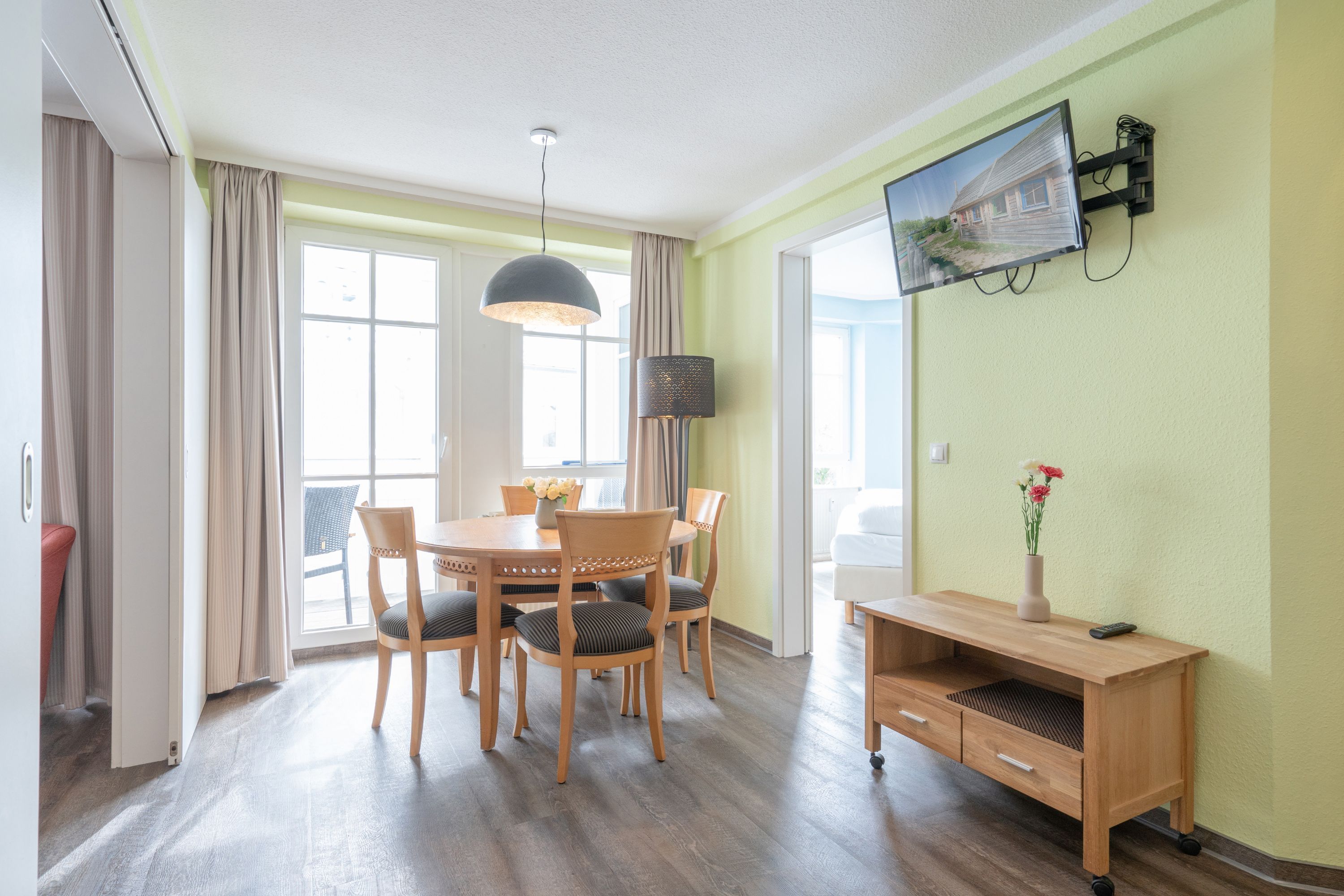 Nach einem erlebnisreichen Urlaubstag können Sie auf dem Balkon in Südostlage Platz nehmen. Der Ausblick und die Sitzgruppe sorgen hier für ein wunderbares Urlaubsgefühl. Im Nichtraucher-Apartment sind keine Haustiere gestattet.