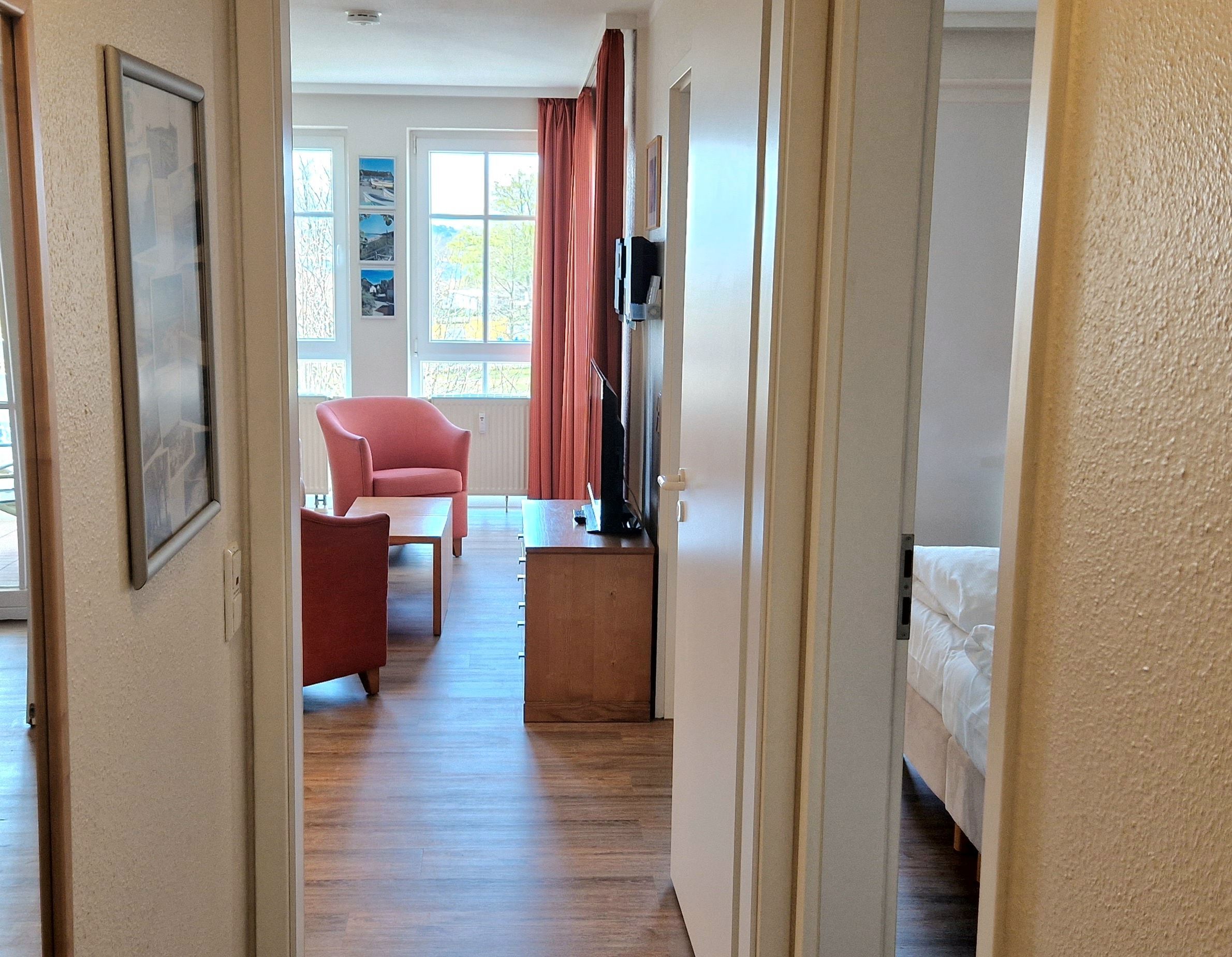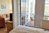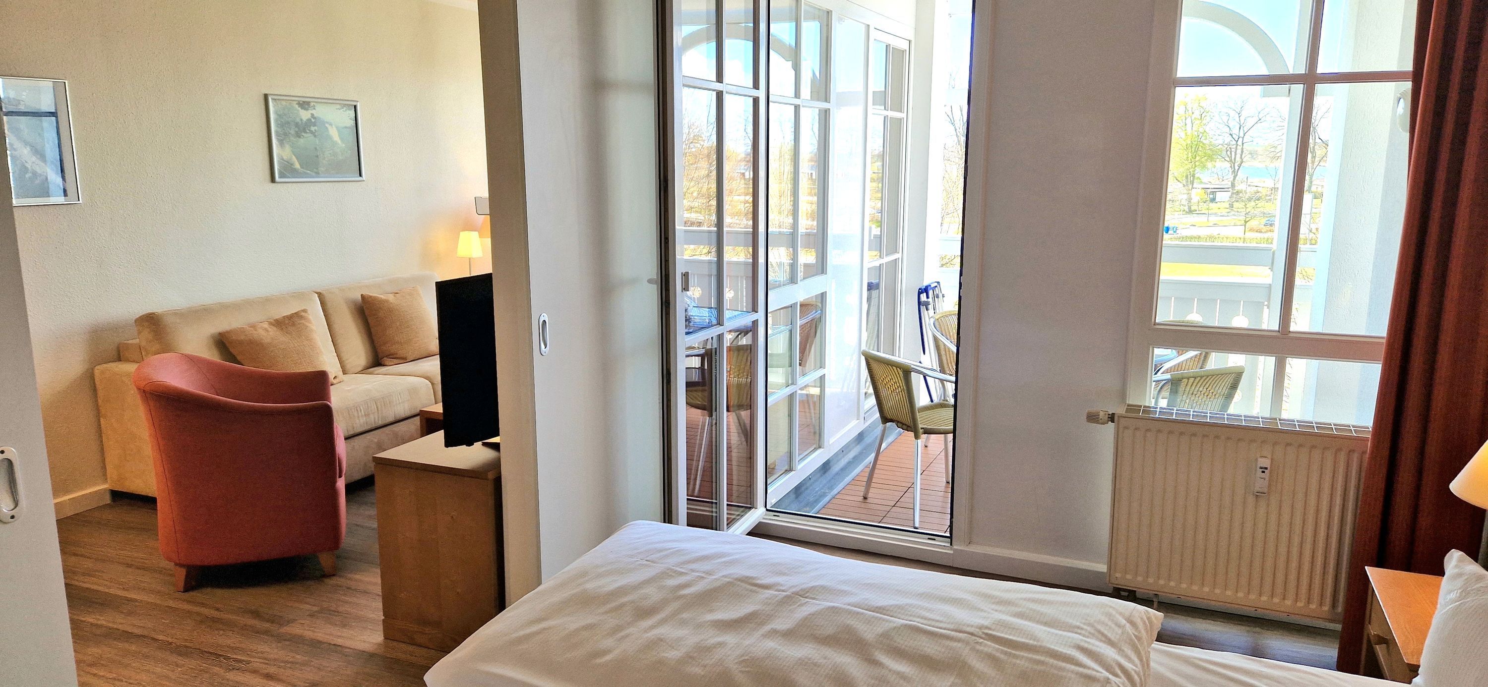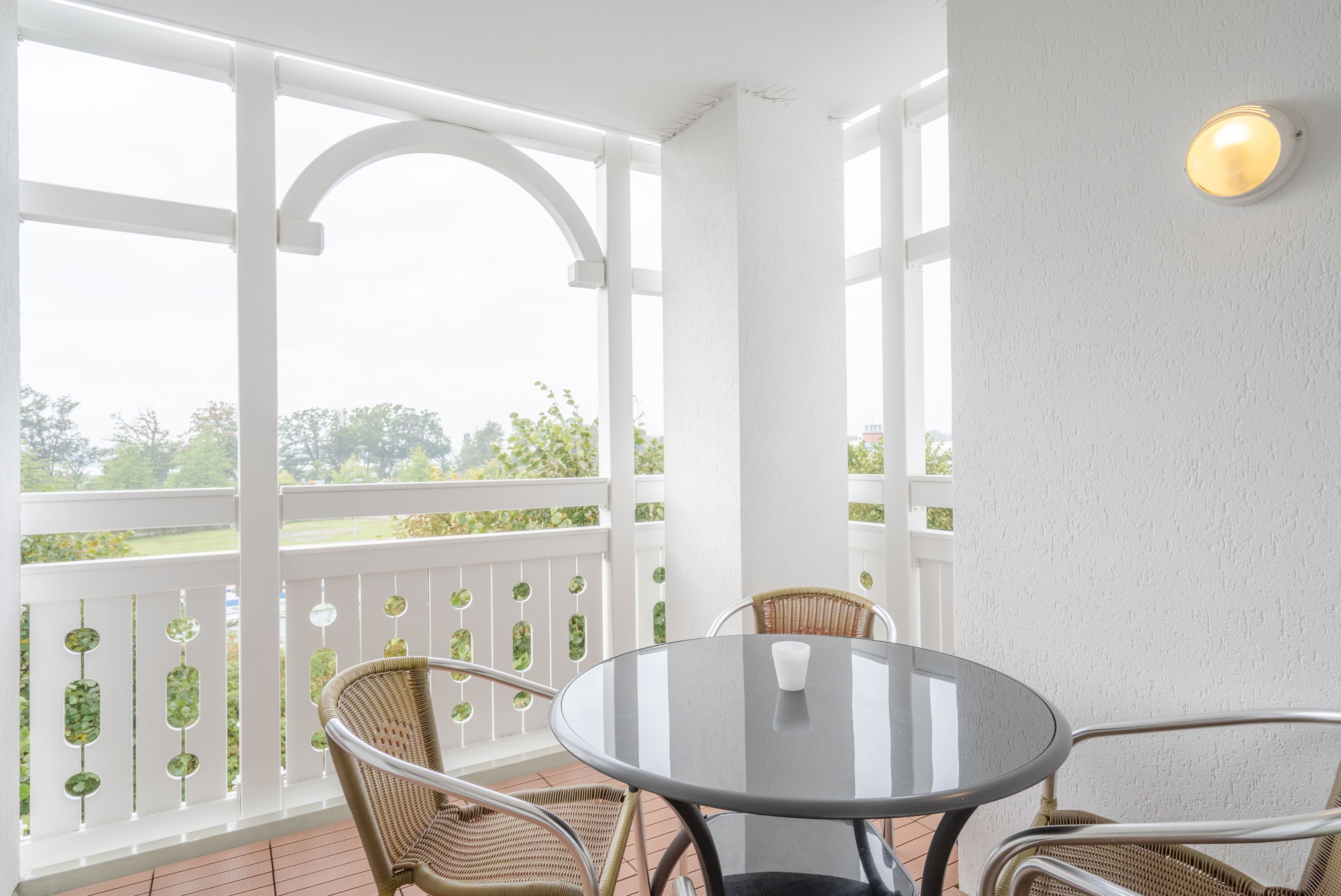 Nach einem erlebnisreichen Urlaubstag können Sie auf dem Balkon in Südwest Platz nehmen. Der Ausblick und die Sitzgruppe sorgen hier für ein wunderbares Urlaubsgefühl. Im Nichtraucher-Apartment sind keine Haustiere gestattet.